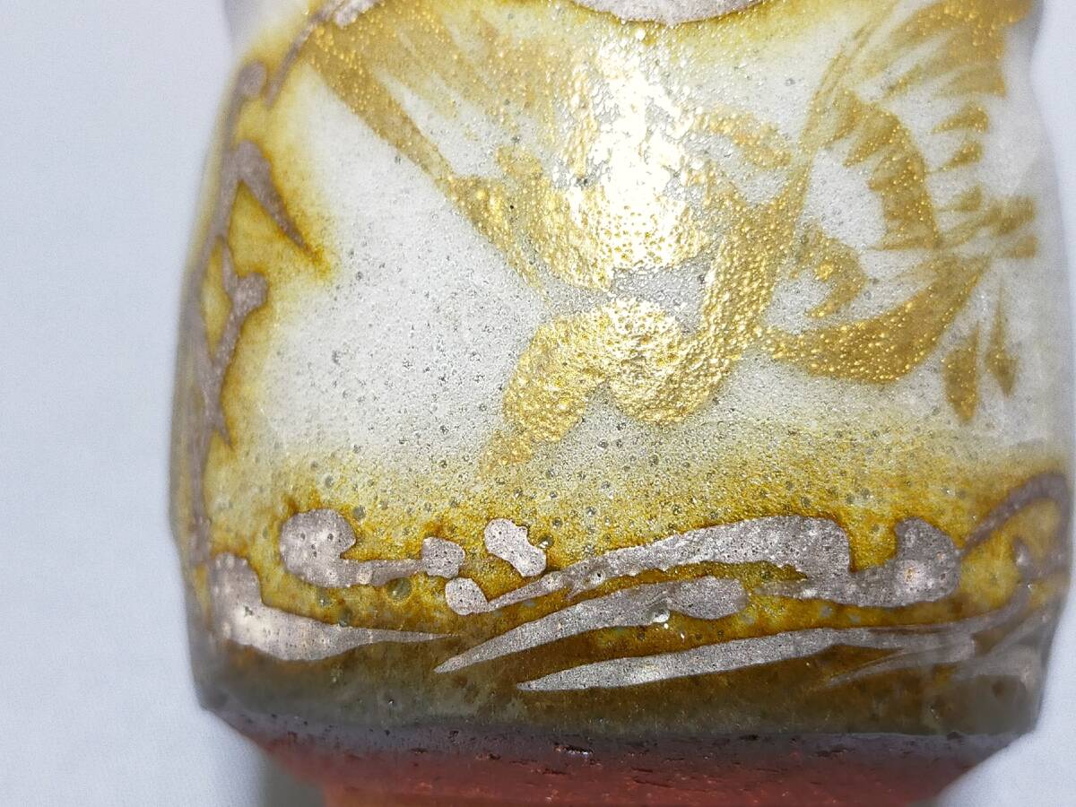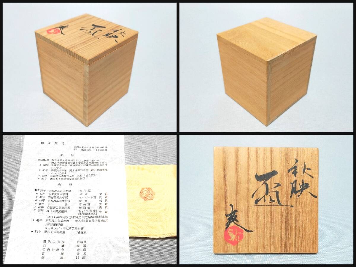 京焼 酒器 鈴木爽司 造 秋映 盃 色絵金彩鶴文 ぐい呑 栞・共布・共箱 師:富本憲吉