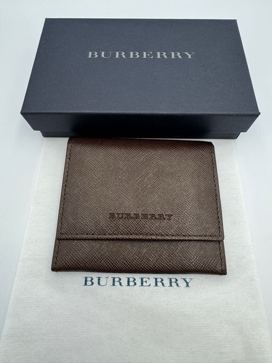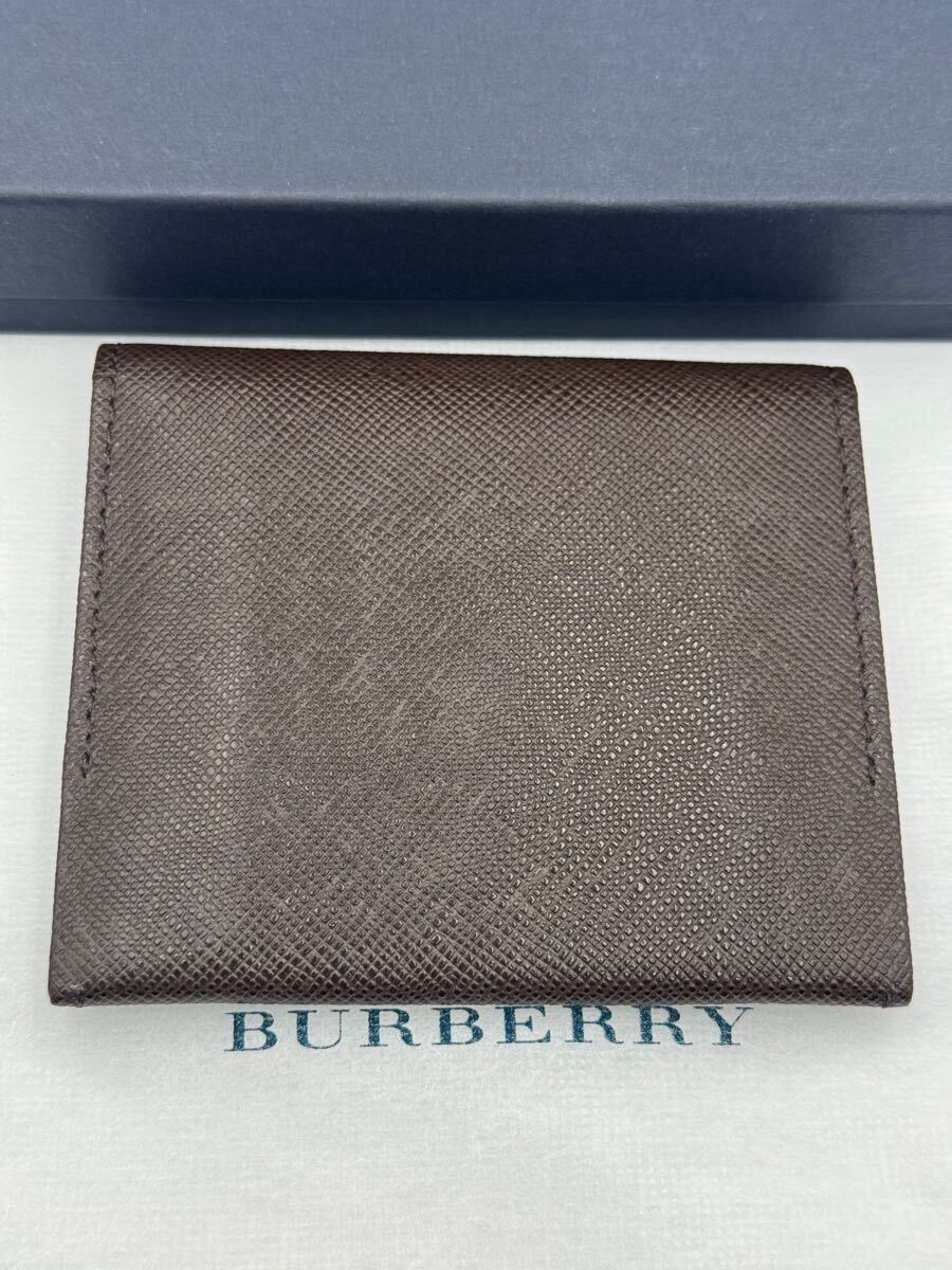 未使用品 バーバリー コインケース ダークブラウン レザー メンズ レディース 小銭入れ 二つ折り財布