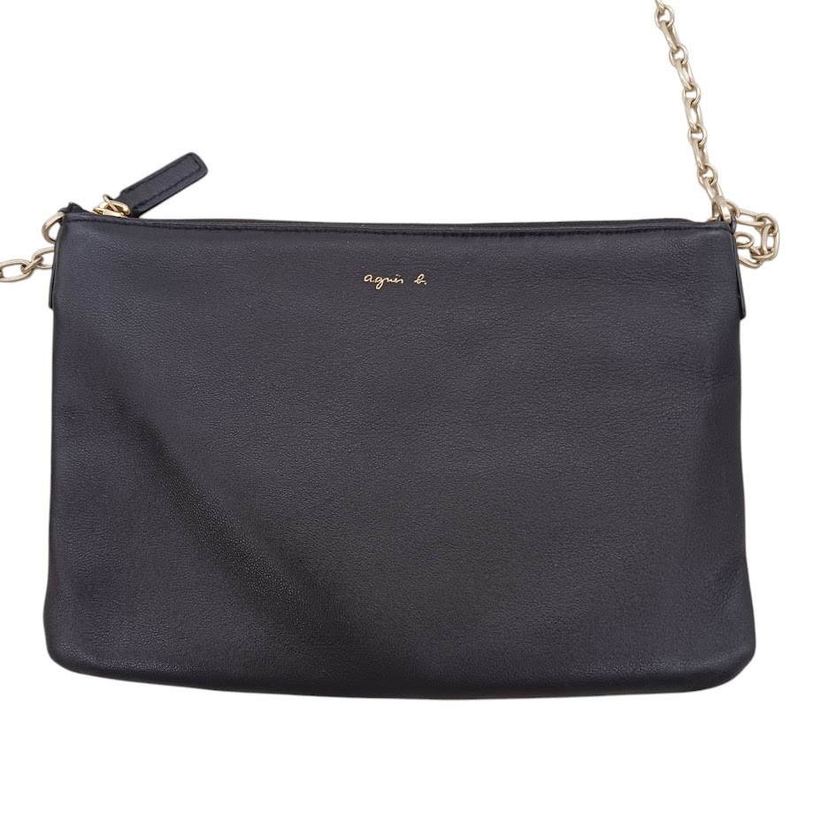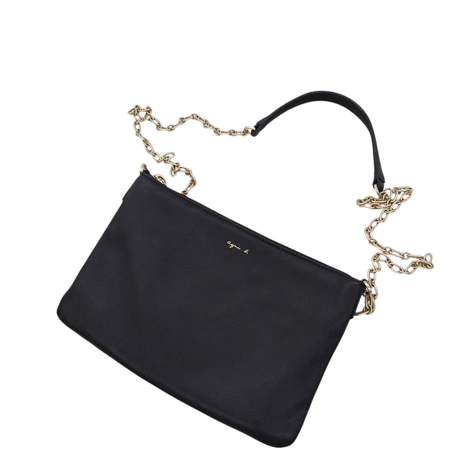 agnes b VOYAGE アニエスベー ゴールド チェーン レザー ショルダーバッグ ブラック BLP01A-01