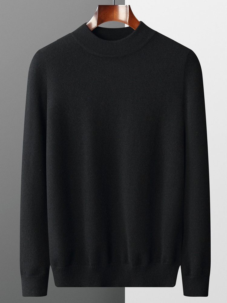 ☆冬暖か着心地の良い紳士用カシミヤ・ハイネックセーターL 黒