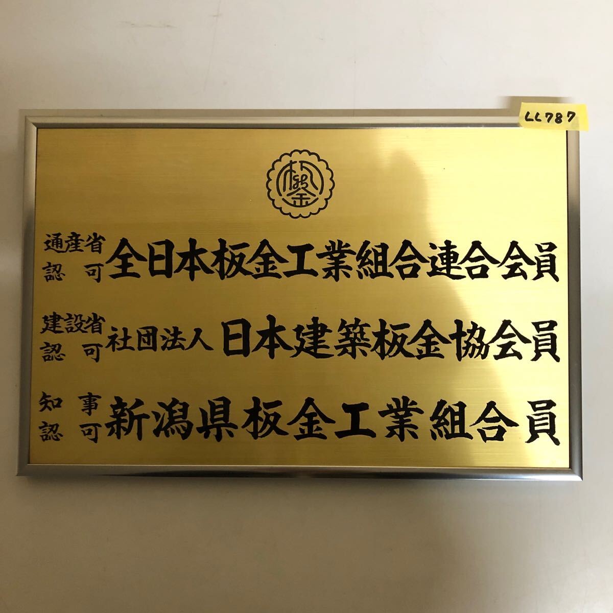 新潟県 板金工業組合 日本建築板金協会 ゴールド パネル 看板 板金屋 板金 盾 会社 オフィス インテリア 飾り LL787