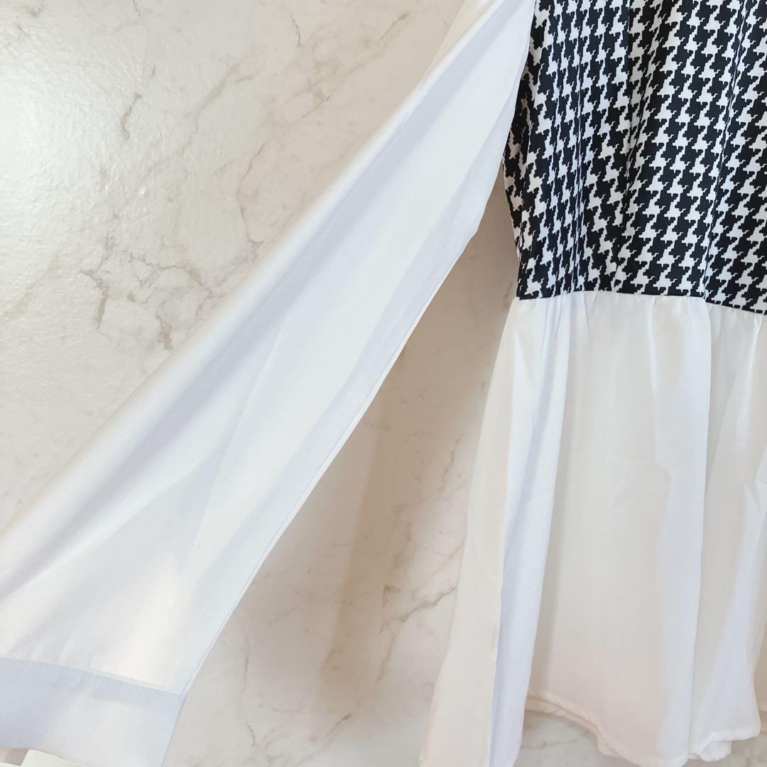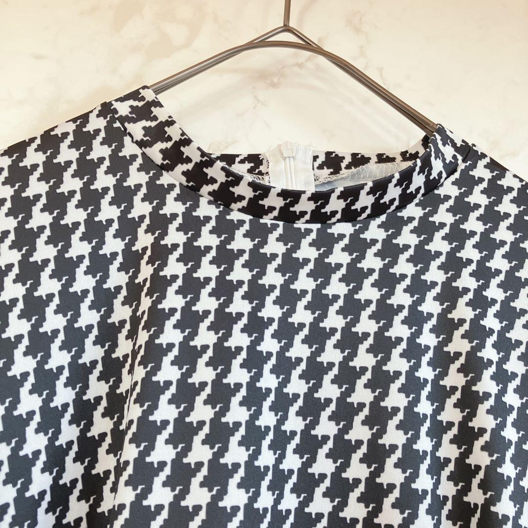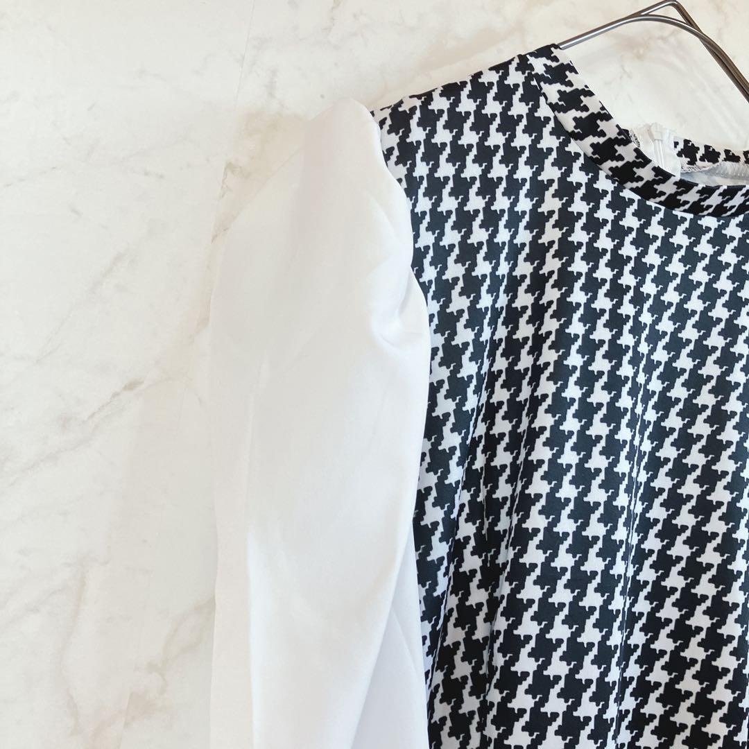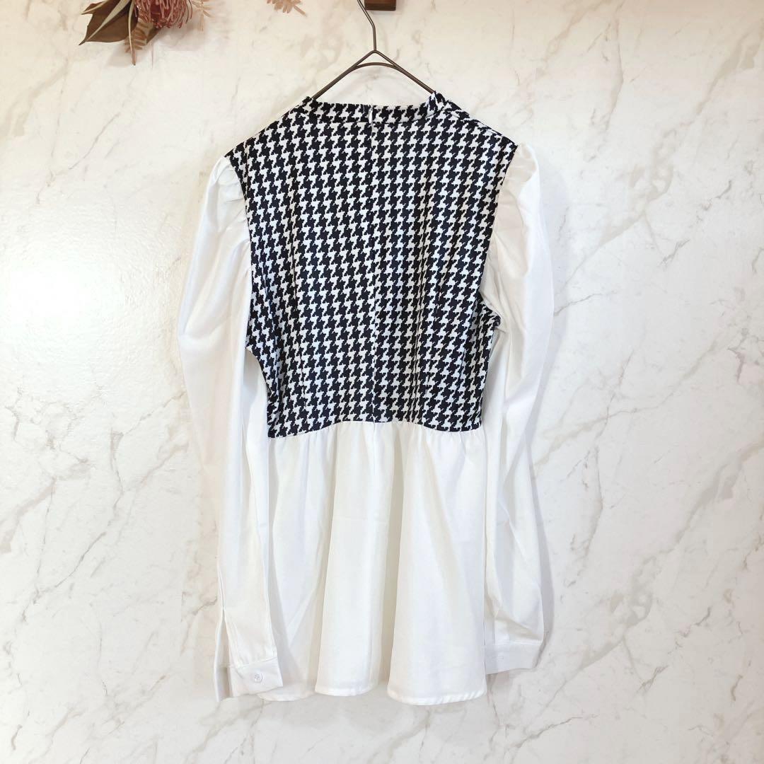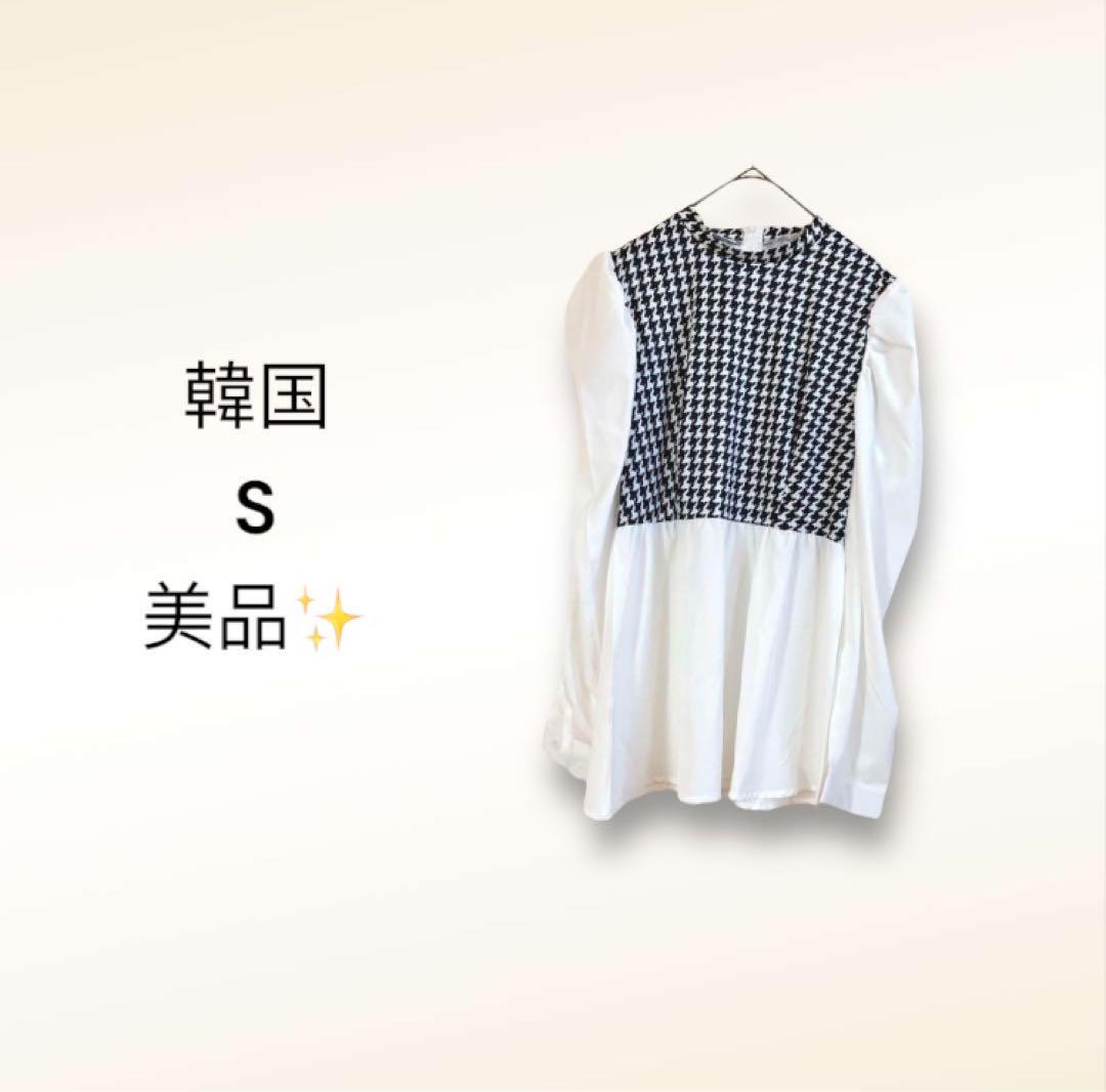 韓国 チュニック シャツ ブラウス 千鳥柄 【S】美品サラサラ生地