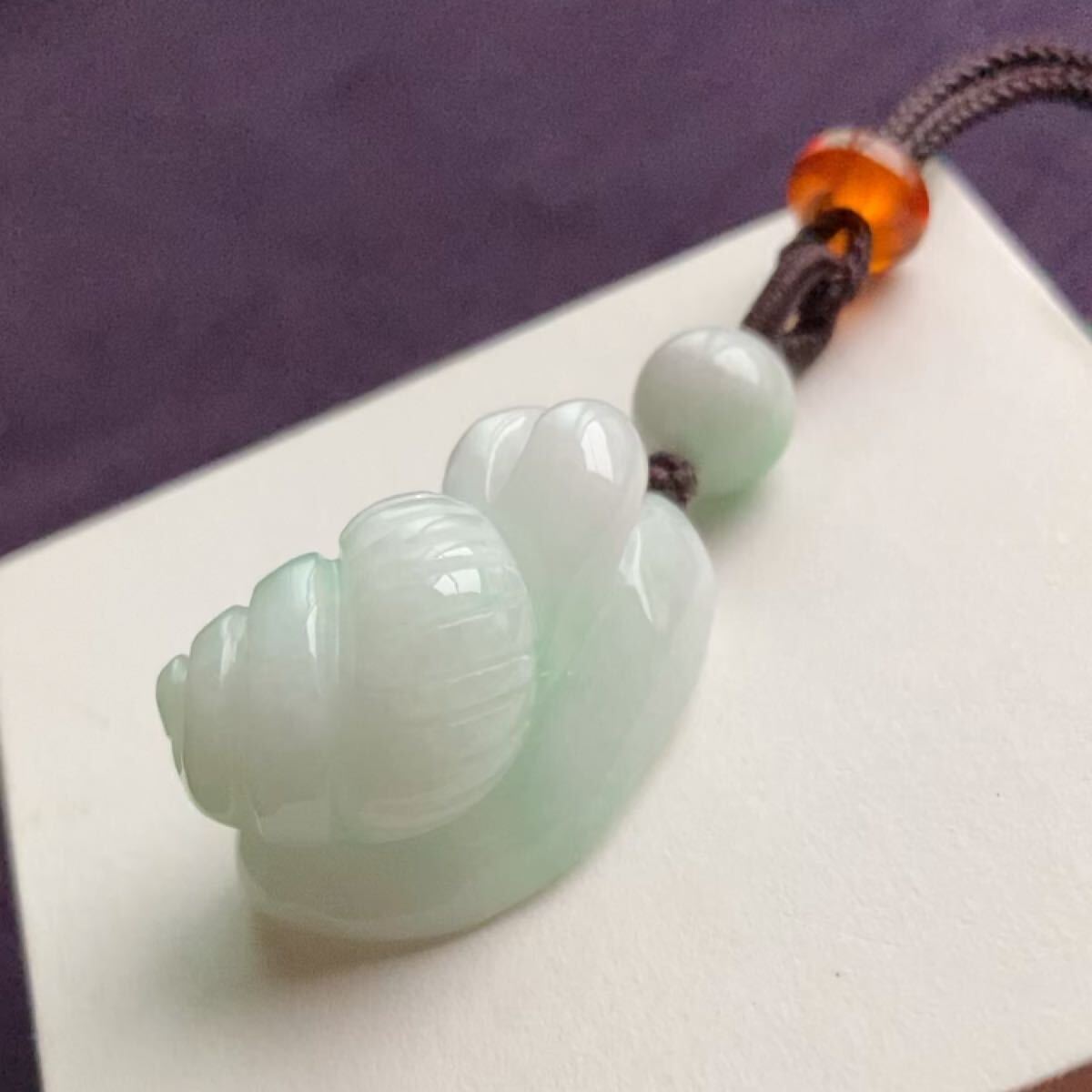 翡翠の肉質がとても良い、色も形もよく、少し綺麗な緑があり、ツヤ、潤い感、トロミがあって大変綺麗!
