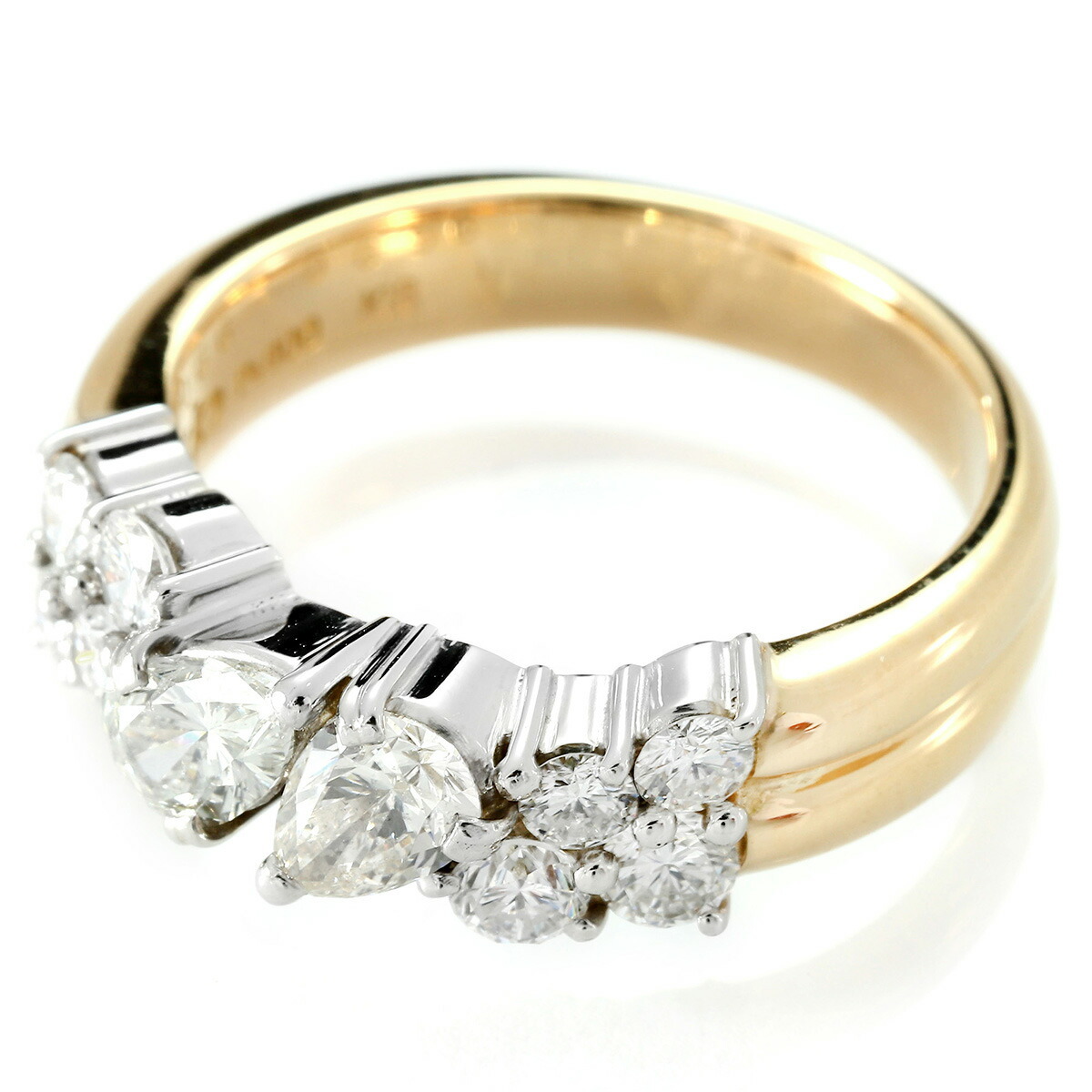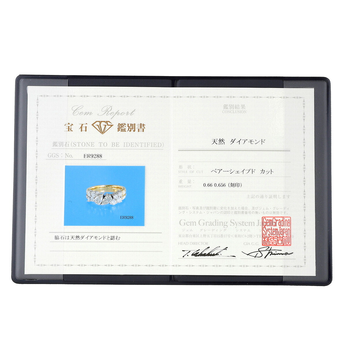 艶やかなゴールドのエッジある煌めきあるペア―シェイプドカットのダイヤモンドを向かい合わせたコンビネーションリング。存在感を放つダイヤモンドの素晴らしい輝きと共にお手元にエレガンスを与えてくれる逸品です。
