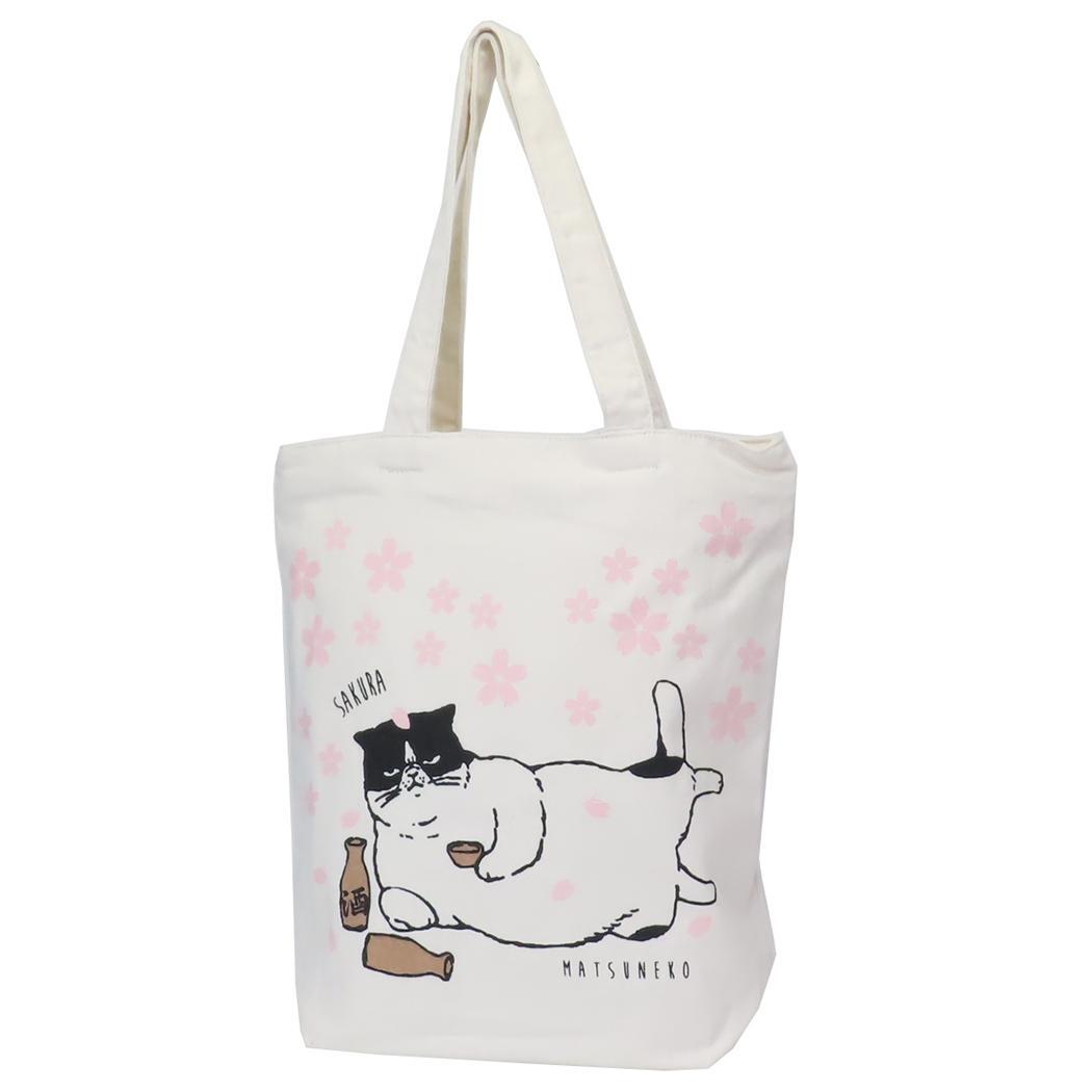 トートバッグ ファスナー付きキャンバストート マツネコ桜 ねこ グッズ ミントイン 手提げかばん かわいい グッズ