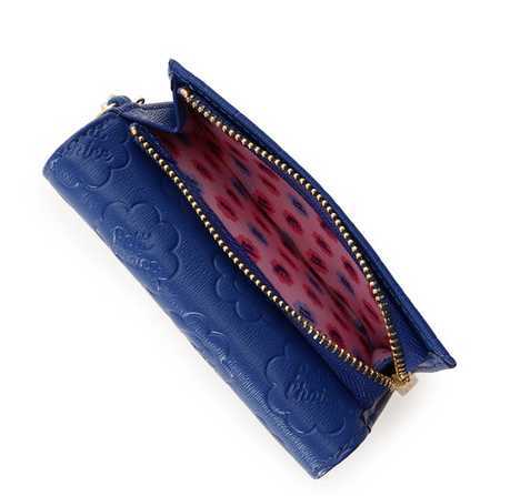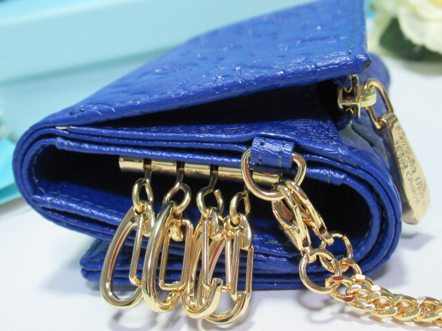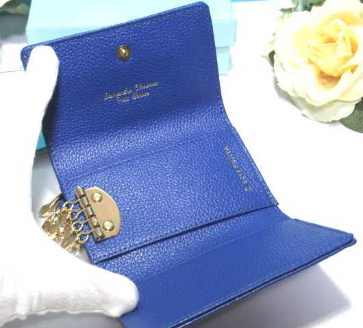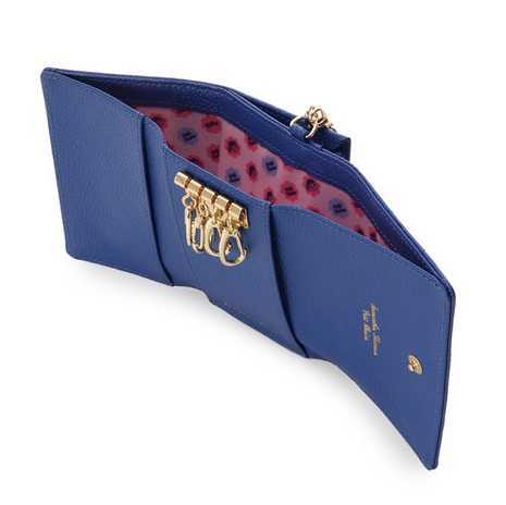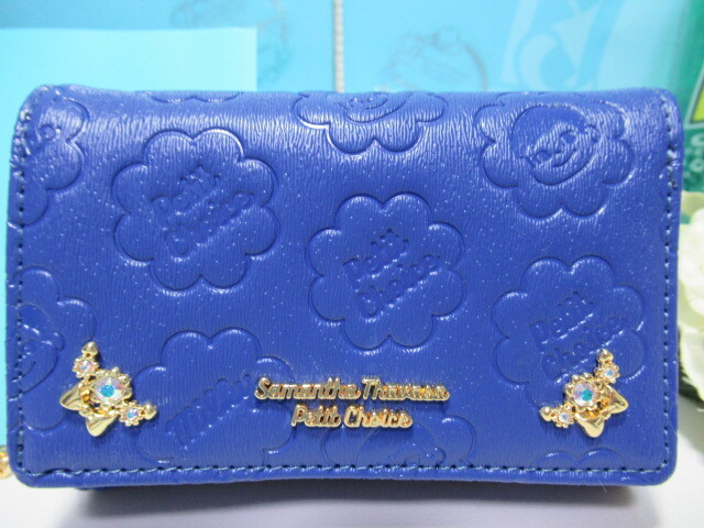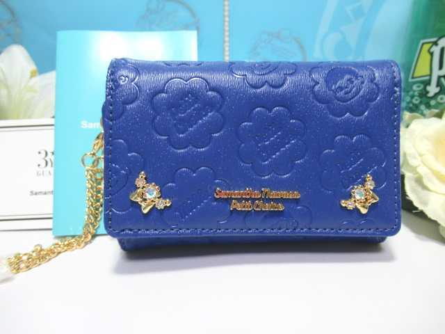 20%引 送料無料 サマンサタバサ 限定 不二家 ポコちゃん 型押 牛革 キーケース チェーン付 ミニ財布 折財布 青 新品 証明書付 ペコちゃん