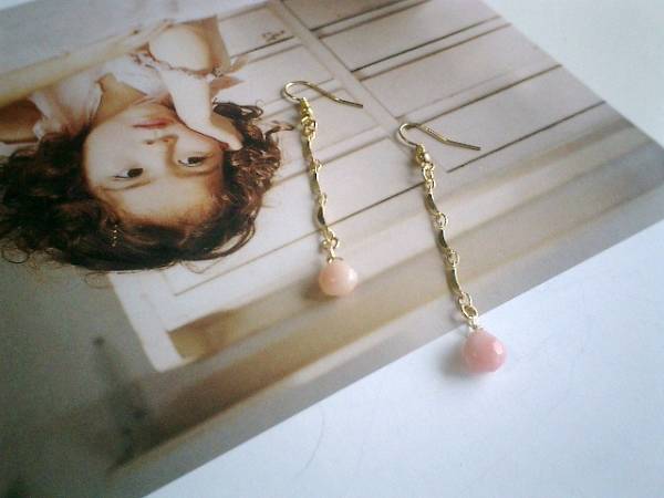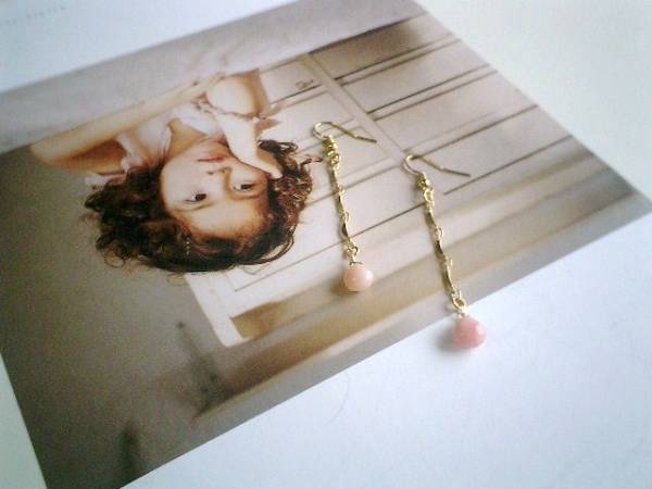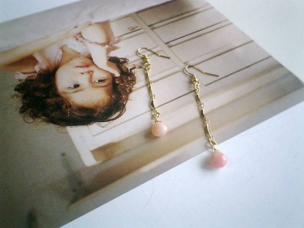 コゼットの裁縫箱・・シリーズです♪魔法のピンク・・キュートなピンクオパールのピアスです♪9ミリ位のマロンシェイプのピンクオパールにデザインチェーンを合わせてロマンチックなデザインです♪長さは全長7センチ位です♪イヤリングにも変更出来ます♪お揃いのネックレスやブレスレットも出品しています♪シンプルで飽きのこないいつまでも着けられるデザインを考えて作りました!ハンドメイドをご理解頂いてノークレーム、ノーリターンでお願いします