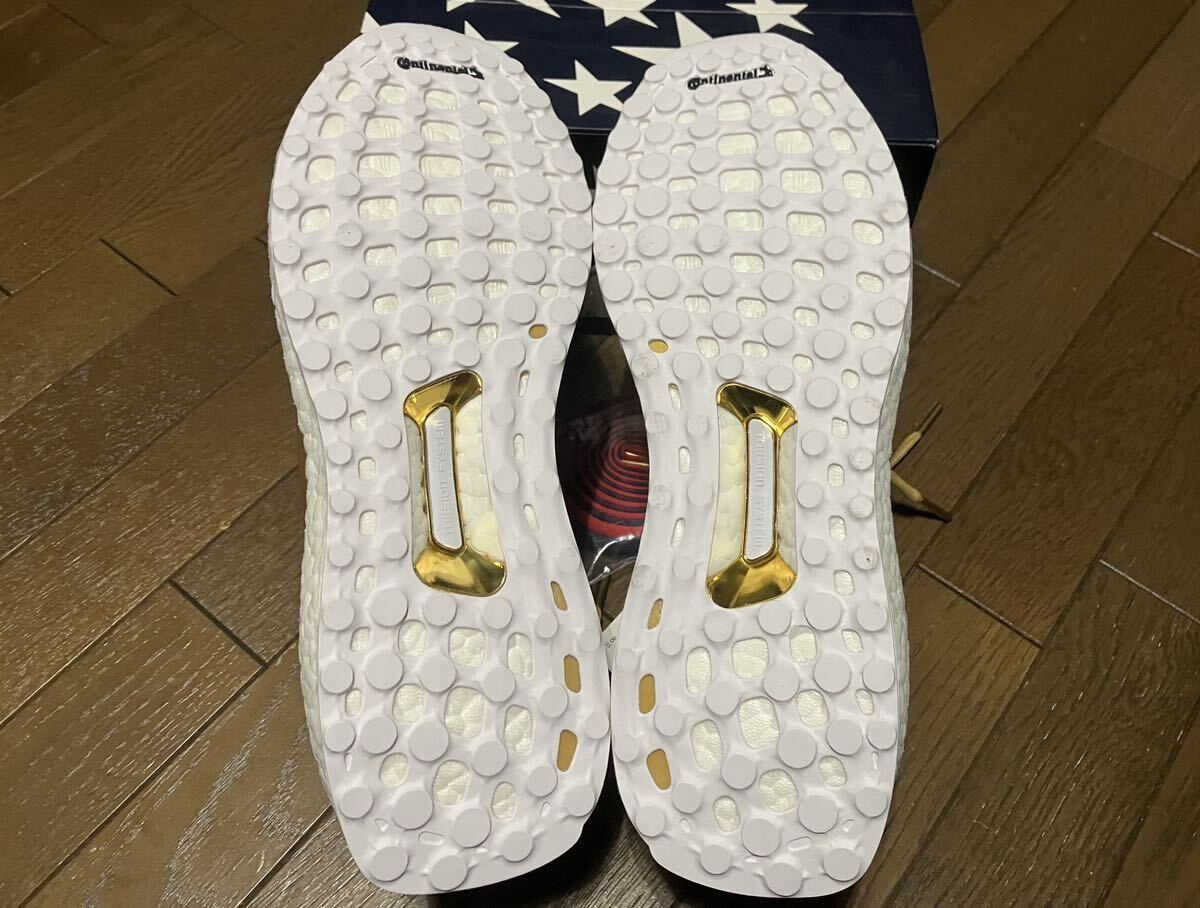 2018年6月発売のKITH別注のadidas COPS18+ ULTARABOOST、8D(J:26cm)、色はゴールドです。