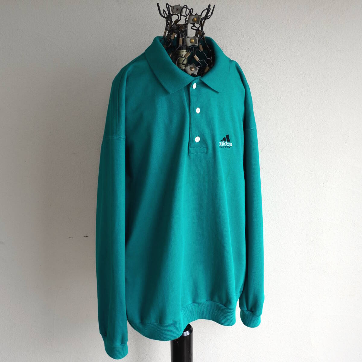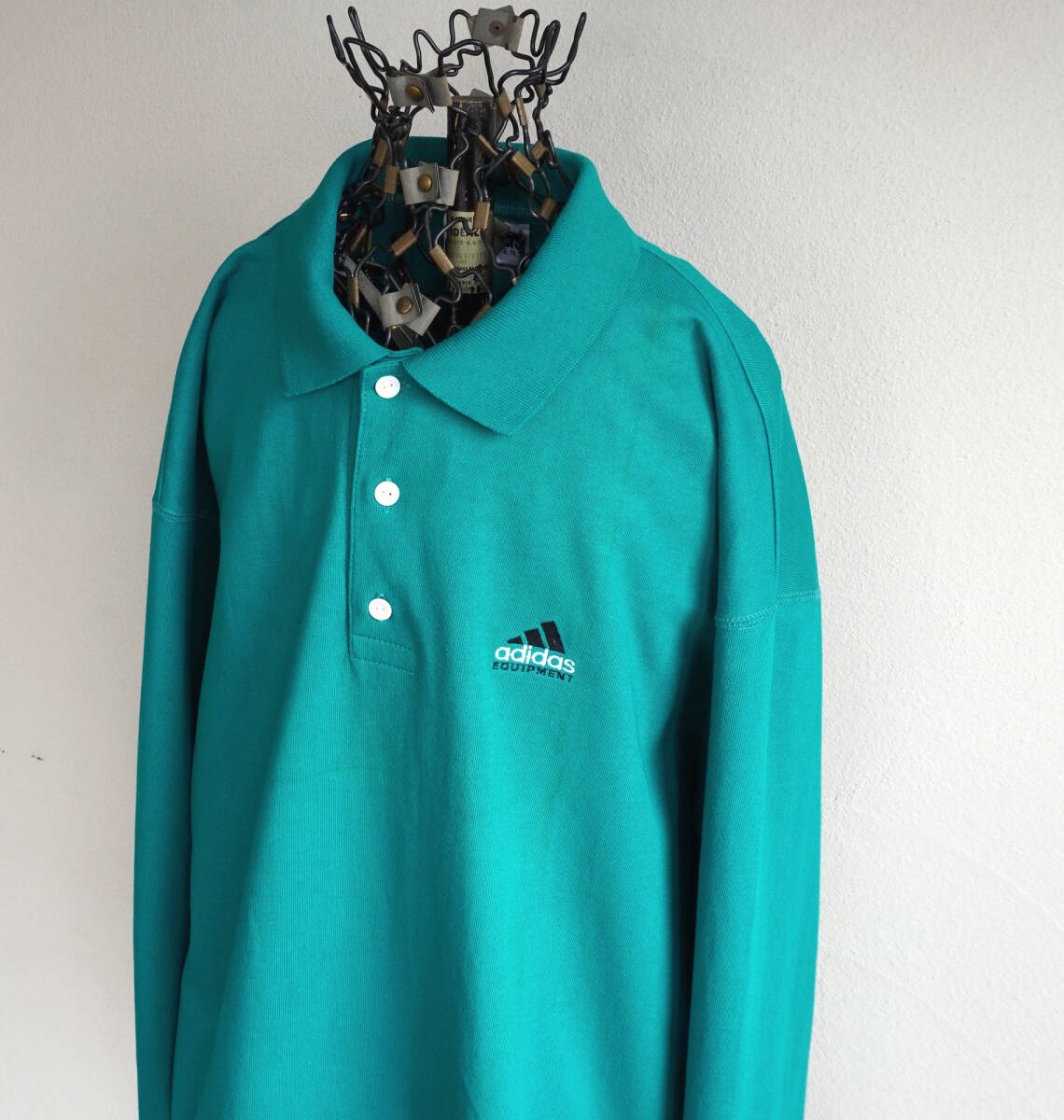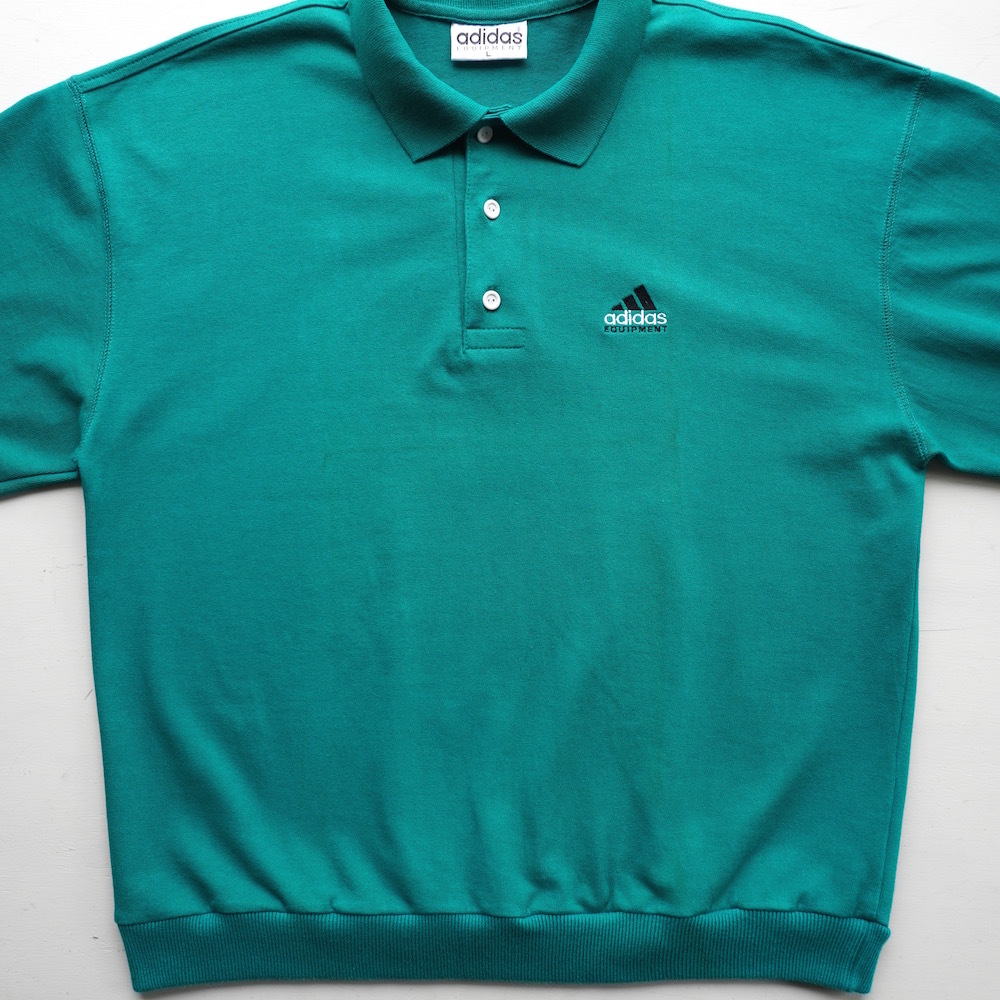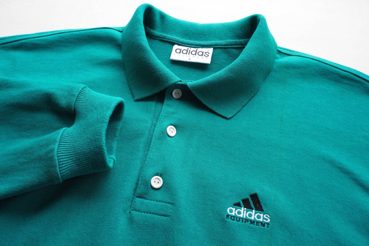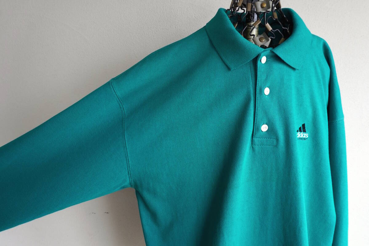 1990s ヴィンテージ adidas パフォーマンスロゴ L/S ポロシャツ L ターコイズグリーン 青緑 アディダス カットソー USA アメリカ 海外 古着