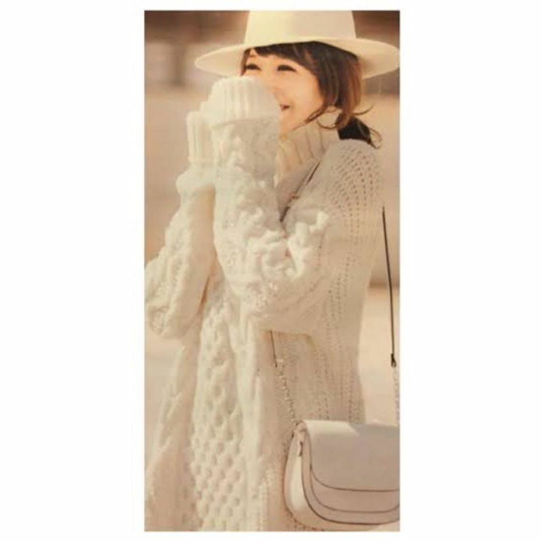 ナチュラルな可愛らしさが際立つ、ケーブル編みをあしらったニットワンピース。ハイネックデザインで小顔効果も発揮してくれそう。袖が長めになっているので、指先をちょこんと出した小悪魔的な着こなしもおすすめです。
