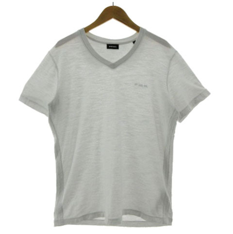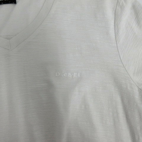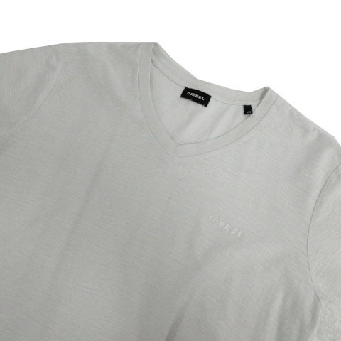 ディーゼル DIESEL Tシャツ Vネック ロゴ刺繍 半袖 コットン エンボス ライトグレー XS メンズ
