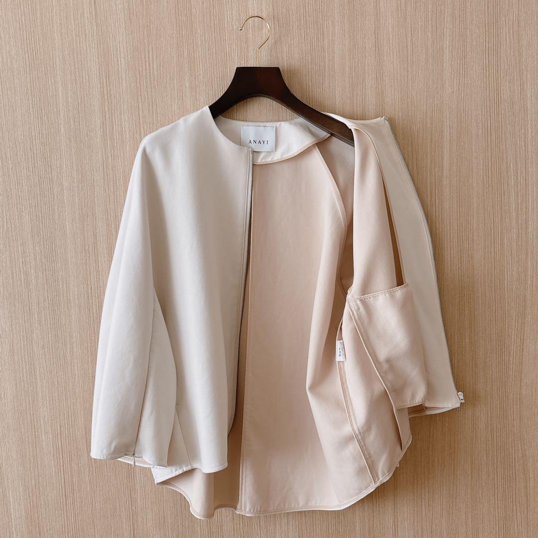 ケープシルエットのハーフブルゾンは、そのままの袖での着用はもちろん、袖内側付いたにファスナーを開けてケープスリーブとしても着用可能な2WAY仕様。