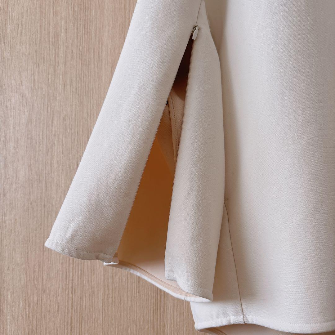 ゆったりとした身頃とアームなのでボリュームニットをインにしても◎。袖ディテールのブラウスなどをインにし、スリットから見せたレイヤードスタイリングも今季のトレンドです。