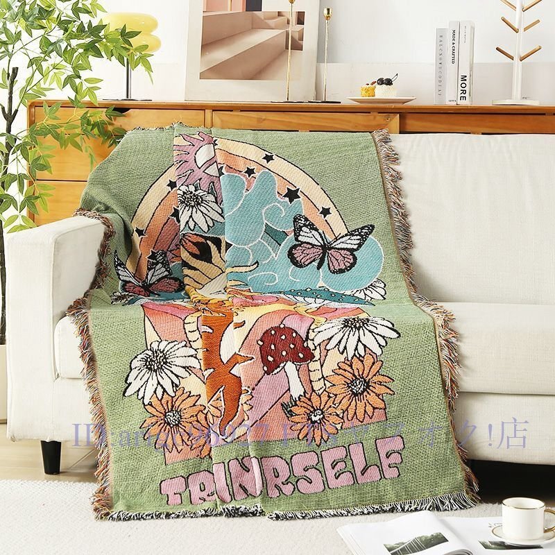 B3313☆新品ソファカバー マルチカバーフリンジ付き オシャレ毛布 ブランケットベッド 洗える 四季通用多機能 130*160cm