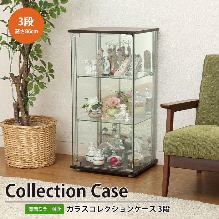 | コレクションケース 3段 背面ミラー付き 幅42.5 奥行36.5 高さ86 棚板強化ガラス おしゃれ スリム ハイタイプ フィギュア ケース 棚 収納棚 ガラスケース コレクション 収納 ガラスコレクションボード 幅42.5cm 高86cm 三段 コレクションボード 吸盤式棚 ダボ付き コレクションラック ディスプレイラック キュリオケース ショーケース |