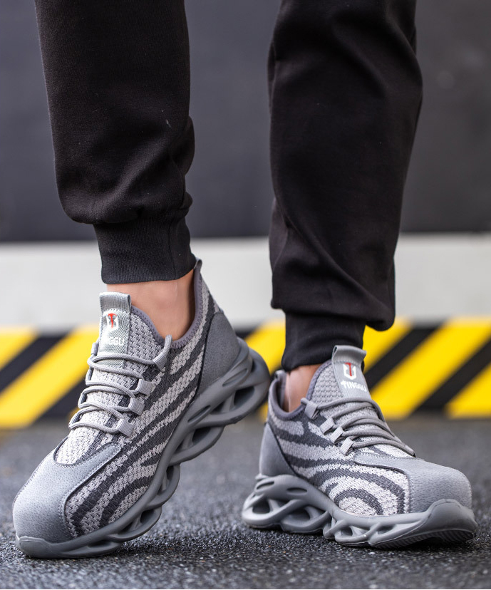【通気性抜群】安全ブーツのアッパーは通気の編み物を採用する、通気性が抜群です。それに空気循環する特殊構造で、靴内の足ムレを軽減し快適です。履き心がいいです。