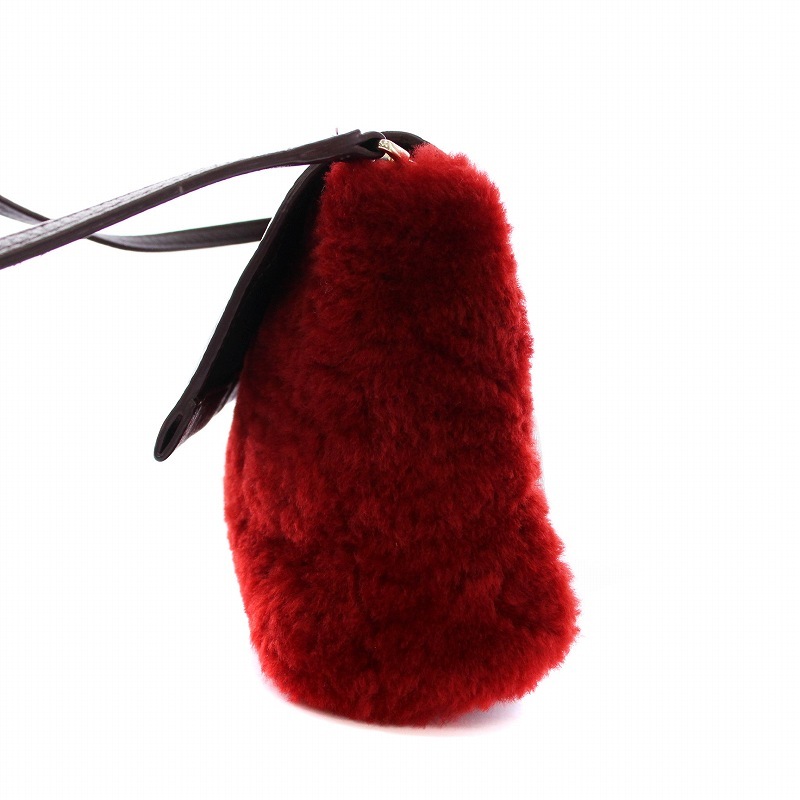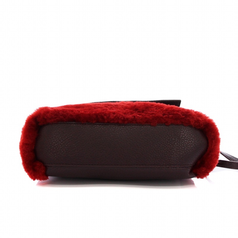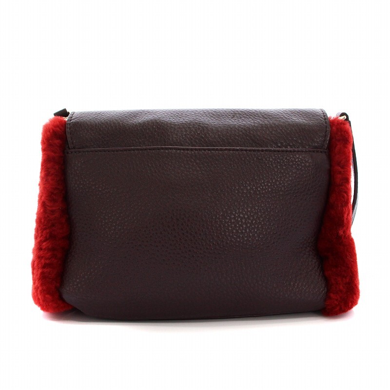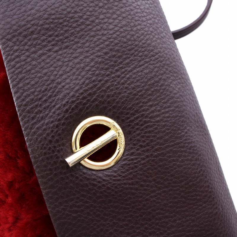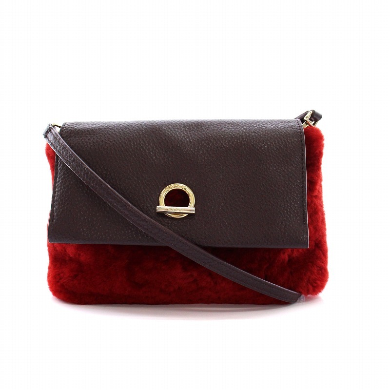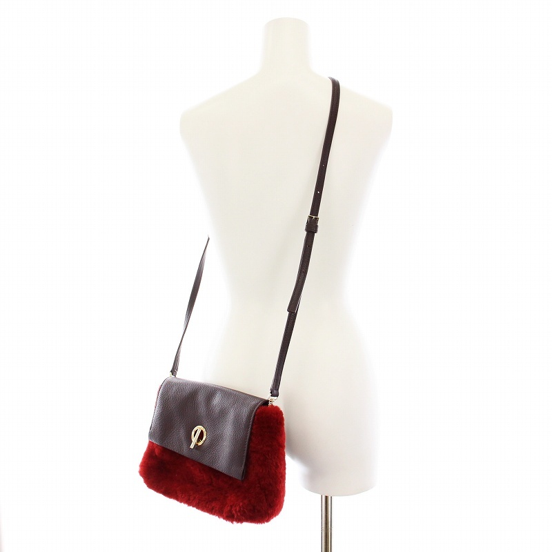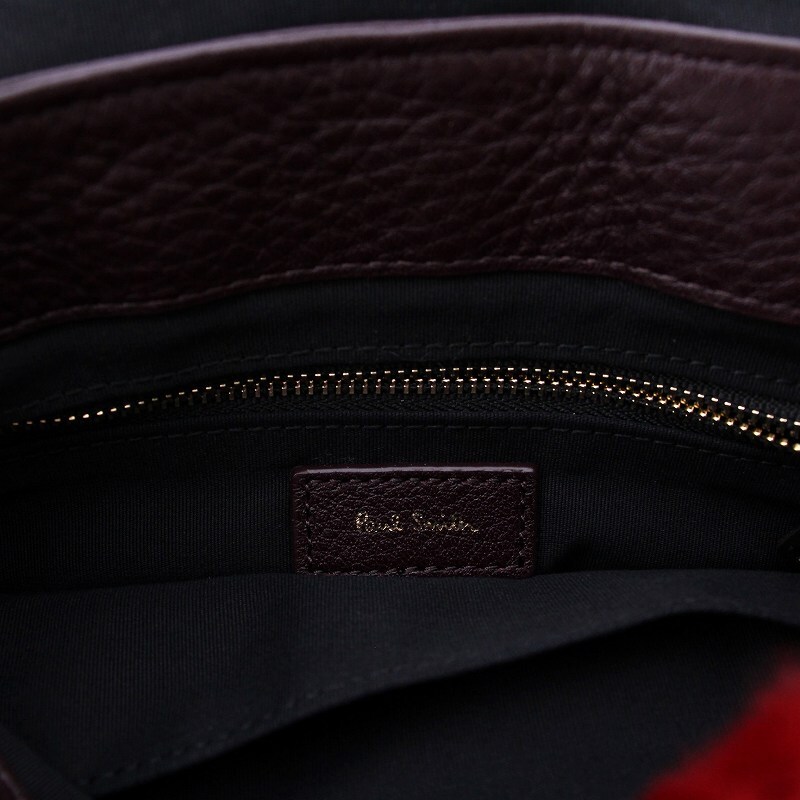 ポールスミス PAUL SMITH シアリングファー レザー ショルダーバッグ 2WAY ポーチ クラッチバッグ 赤 茶 /YM レディース