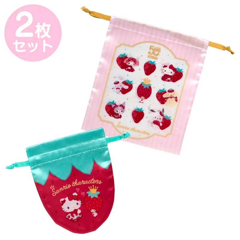 【サンリオ】いちご新聞50周年 いちご 巾着 2枚セット キティ マイメロ シナモン いちごの王様 クロミ プリン ポチャッコ 1Z7931KR703