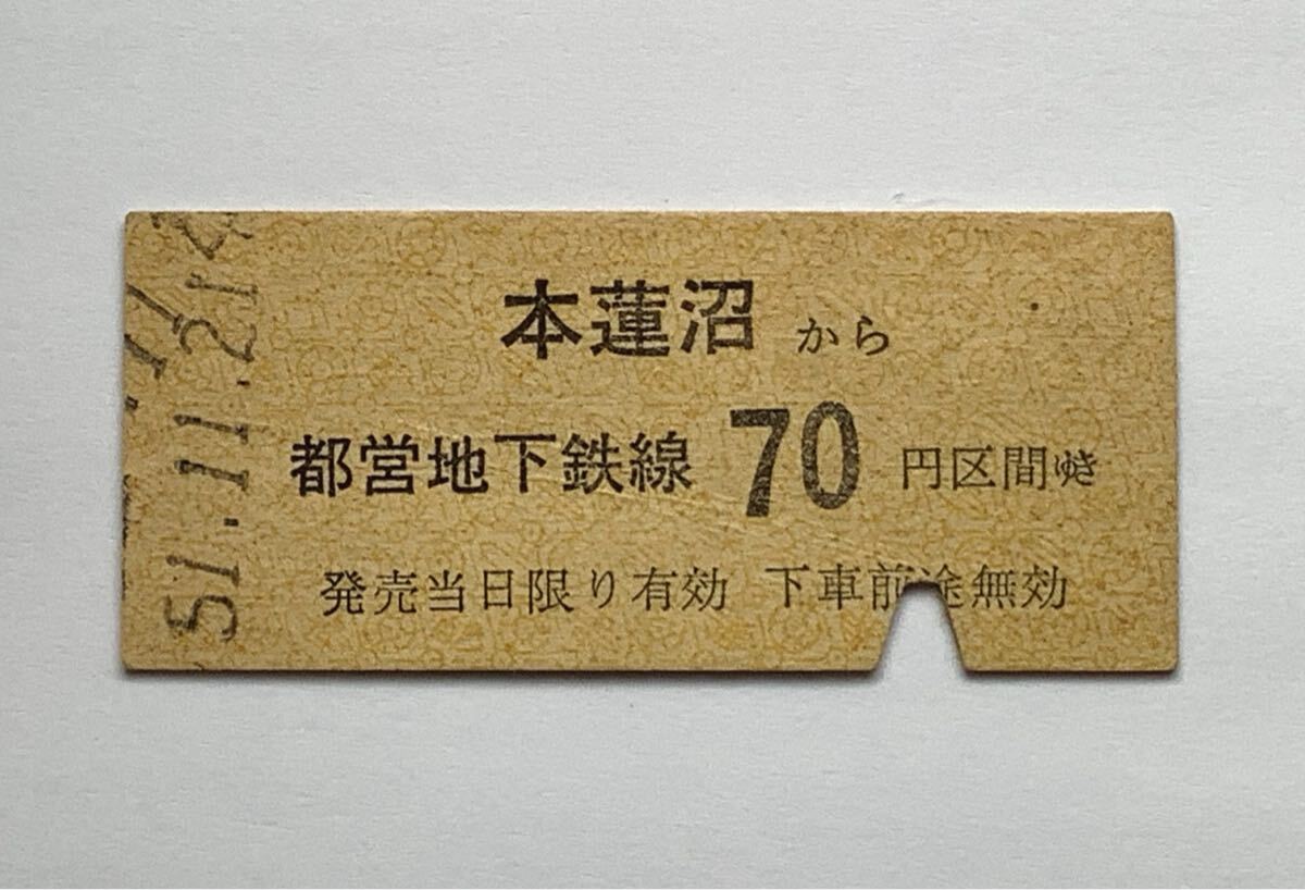 【商品】東京都交通局 都営地下鉄 乗車券 (本蓮沼→70円区間) 本蓮沼駅発行