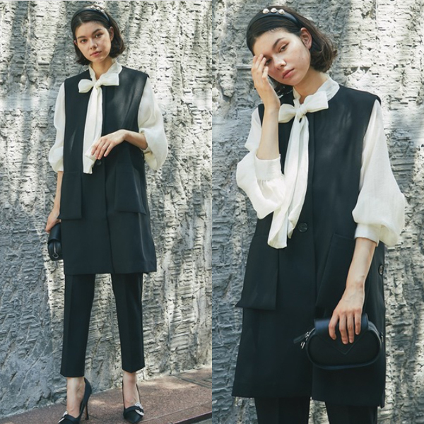 【SMILE ORCHID スマイルオーキッド】ノーカラー サイドスリット ジレベスト ブラック オケージョン卒入園セレモニー卒入学 学校行事