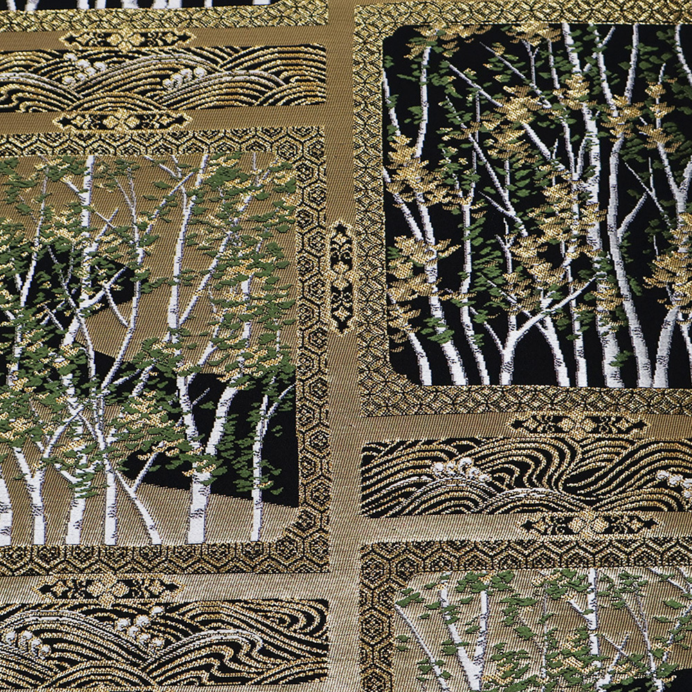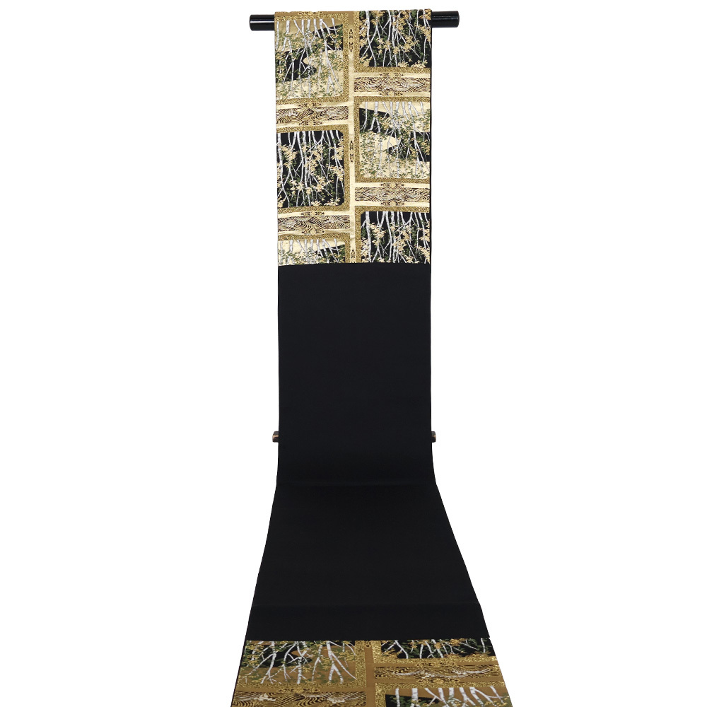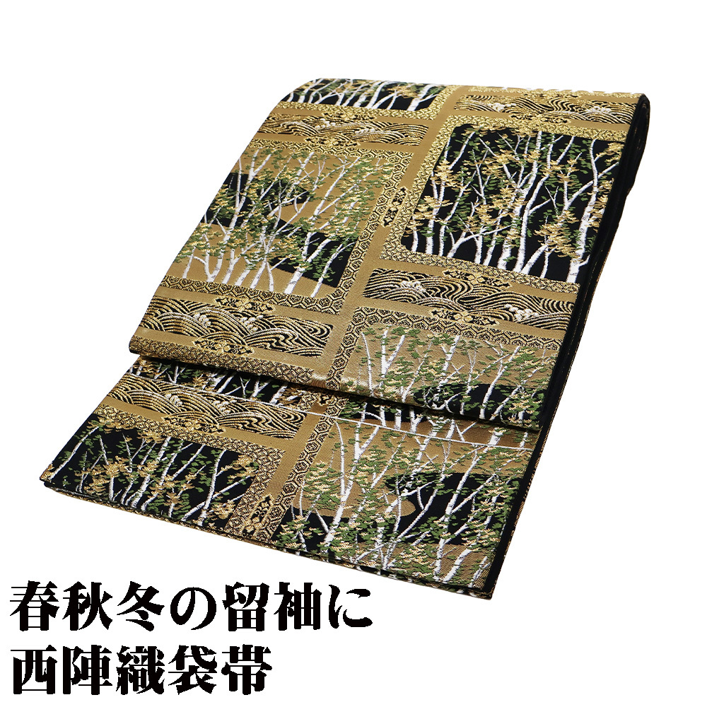 | 西陣織袋帯 薫風彩映 黒・金箔地 樹木・襖絵文 仕立て上がり | |