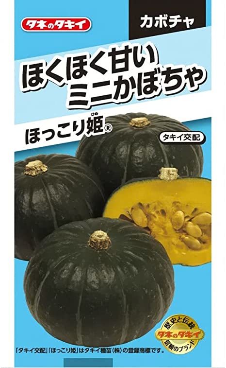 1果重が700g程度のミニかぼちゃです。高粉質でキメの細かい肉質と甘みが特徴で、食味・食感に優れます。草姿は大葉で強勢ですが、低節位から着果が安定する豊産種です。