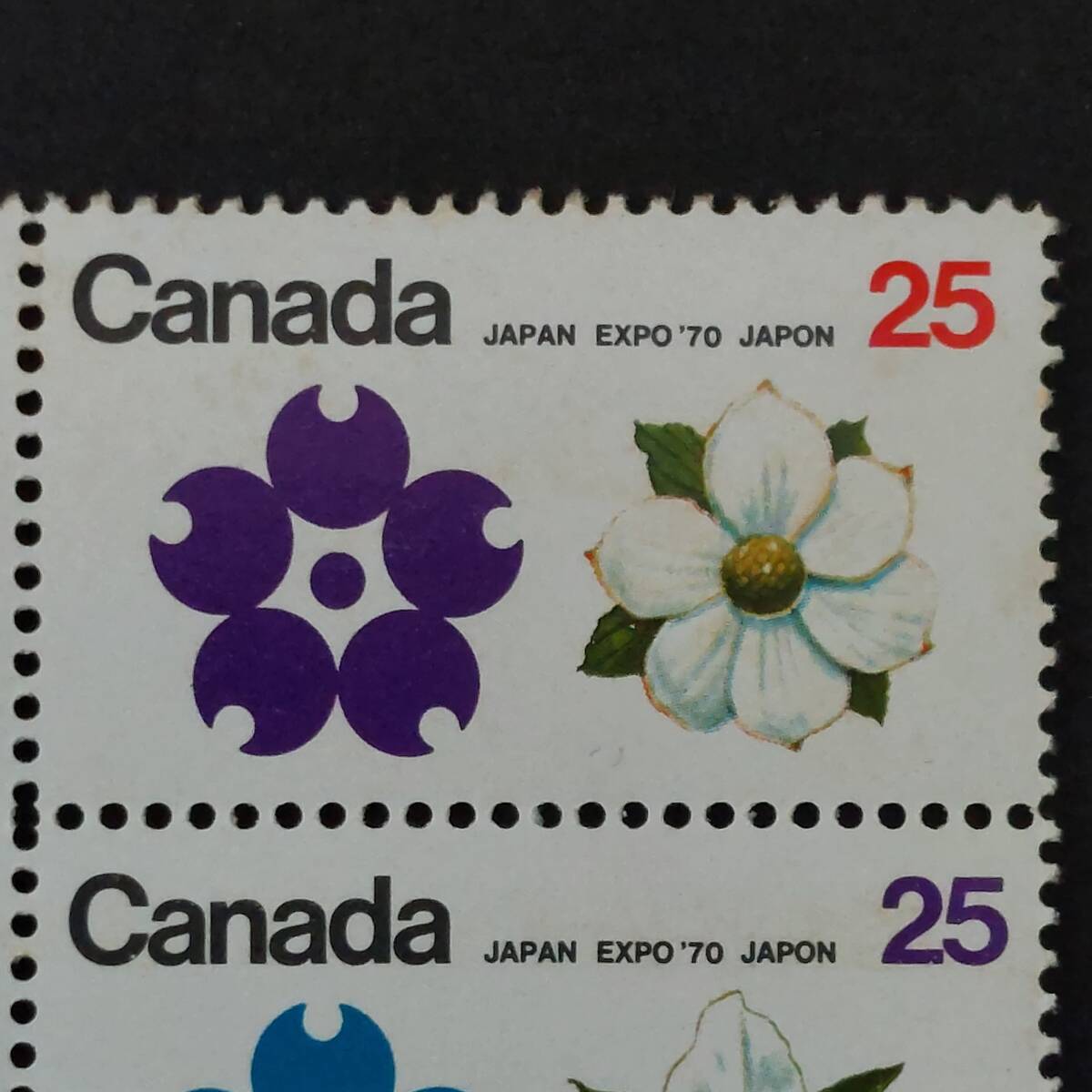 K651 カナダ切手「1970年大阪万博記念 4種田型切手(タブ付き) デザイン:『エンブレムと州花』」1970年発行 未使用