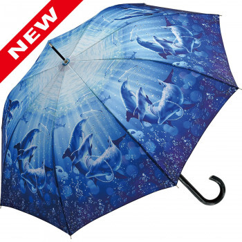 ラッセンのアートをダイナミックに使用したスタイリッシュなジャンプ傘!傘を広げれば、水面を見上げたような神秘的な世界が広がります。 |