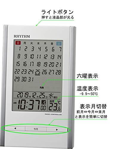 「リズム(RHYTHM) 置き時計 目覚まし時計 電波時計 カレンダ 温度計 アラム 白 15x9.1x5cm 8RZ210SR03」▼4903456215096▼(商品説明)ホワイト/15x9.1x5cm/8RZ210SR03・パッケジ個数:1・サイズ: 15×9.1×5cm・使用電源:単3形×2本(別売)・ムブメント:電波時計・アラム:電子音(ピ・ピ・ピ)・温度表示-: 9.9~50℃コンパクトサイズのマンスリカレンダクロック。電波時計なのでカレンダを自動で更新(受信成功時) 六曜表示付きで、大安などお日柄が分かります。 縦型なので狭いスペスにも置け、便利です。