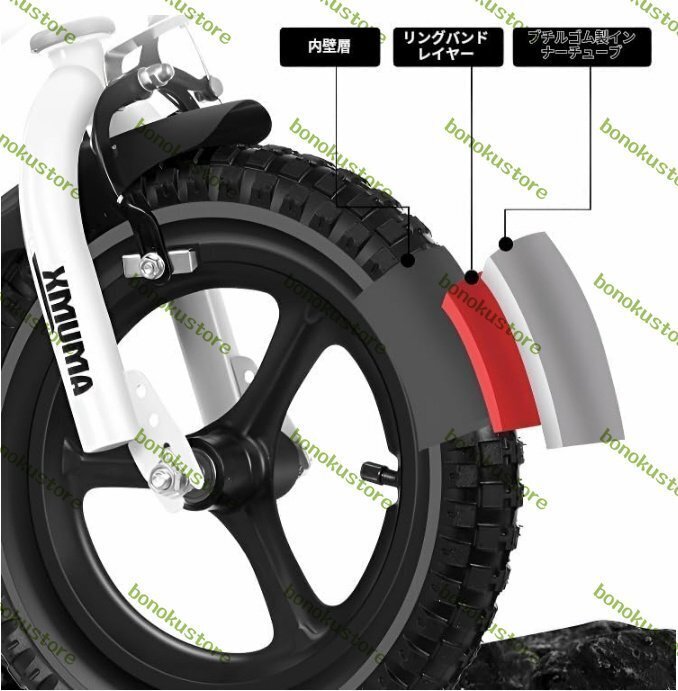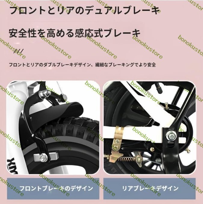 3 補助騎行はより安全で 安全補助輪を太くして ブレーキが敏感で安全で しっかりと地面をつかむ耐摩耗タイヤは どんな状況にも恐れず 子供を楽に乗せる