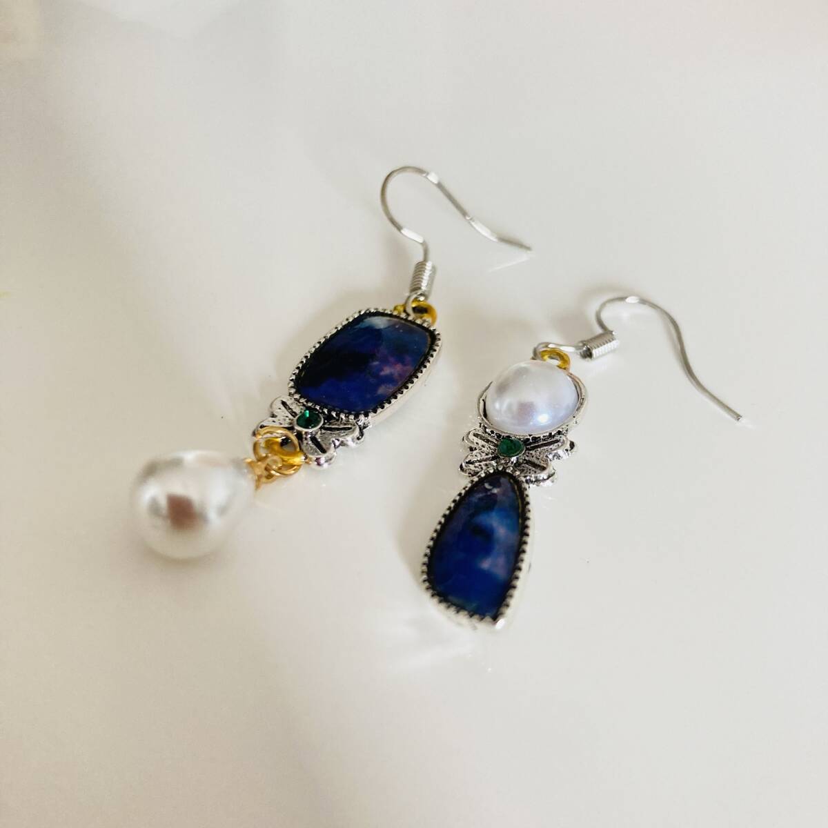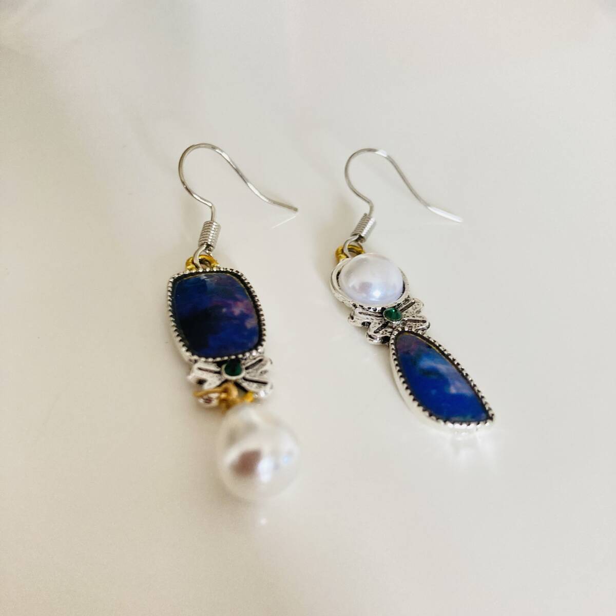 956 新品未使用 パール シンプル ピアス 両耳セット 可愛い 結婚式 イベント 上品 大人 シルバー ホワイト ブルー ジュエリー アクセサリー