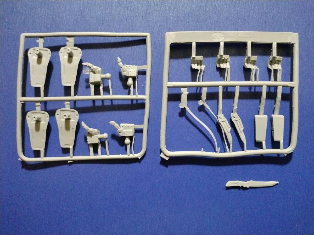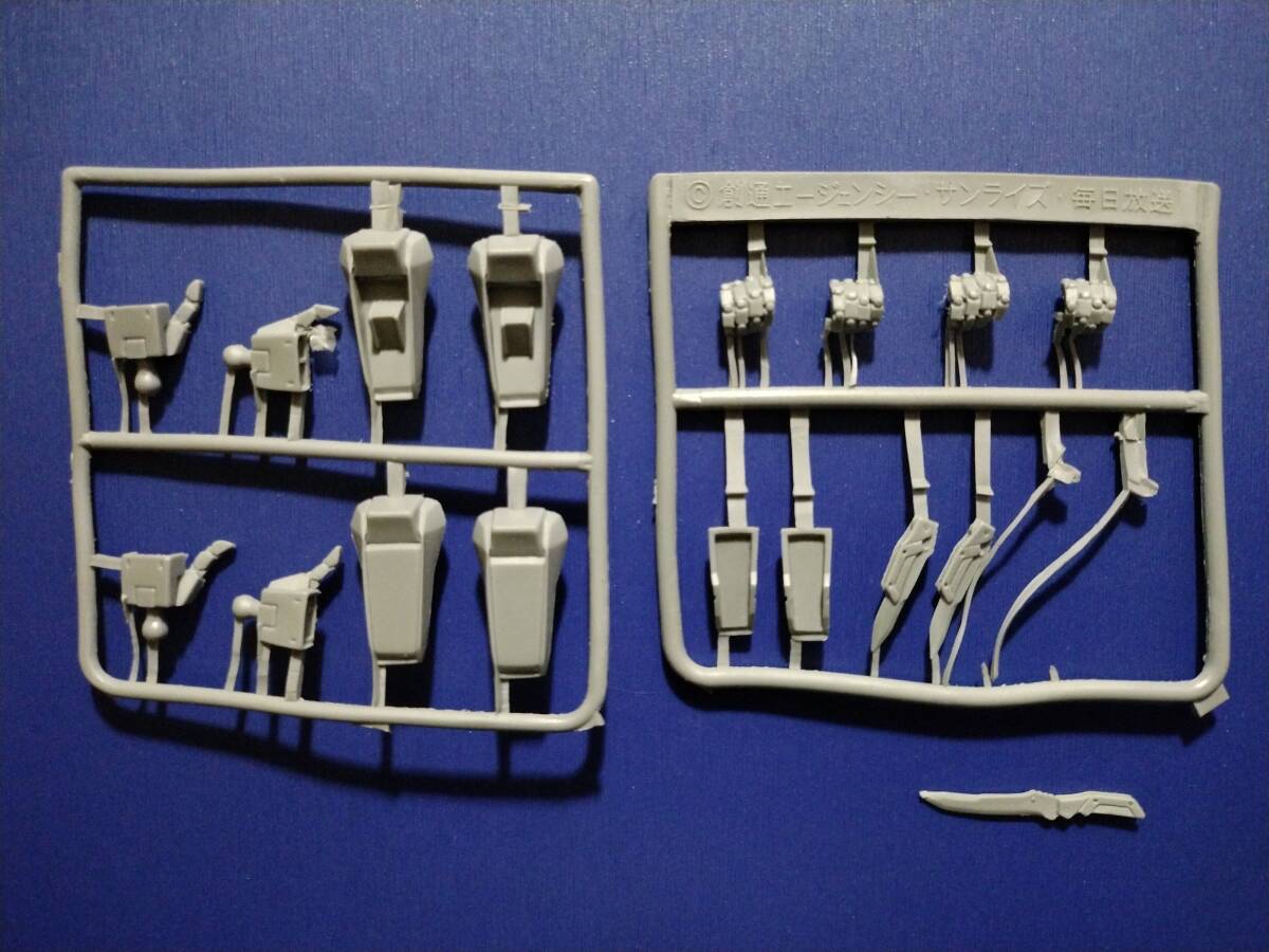 ◆ランナー×2。右側のランナーの右下のアーマーシュナイダー(展開状態)が1本欠品で有りません。もう1本はランナーから外れています。
