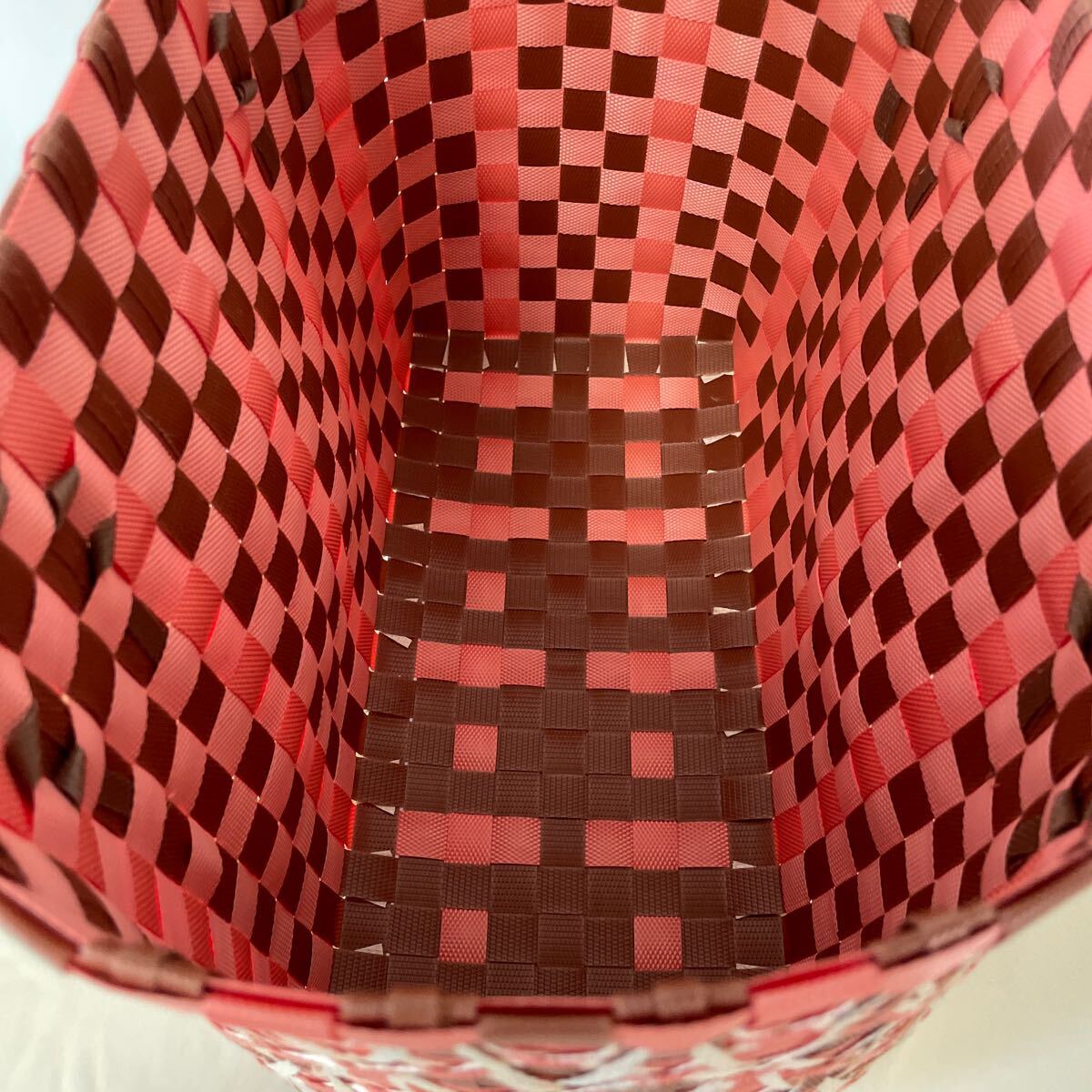 発送の際は、持ち手はバックの中に入れてお送りいたします。到着次第引き上げてください。