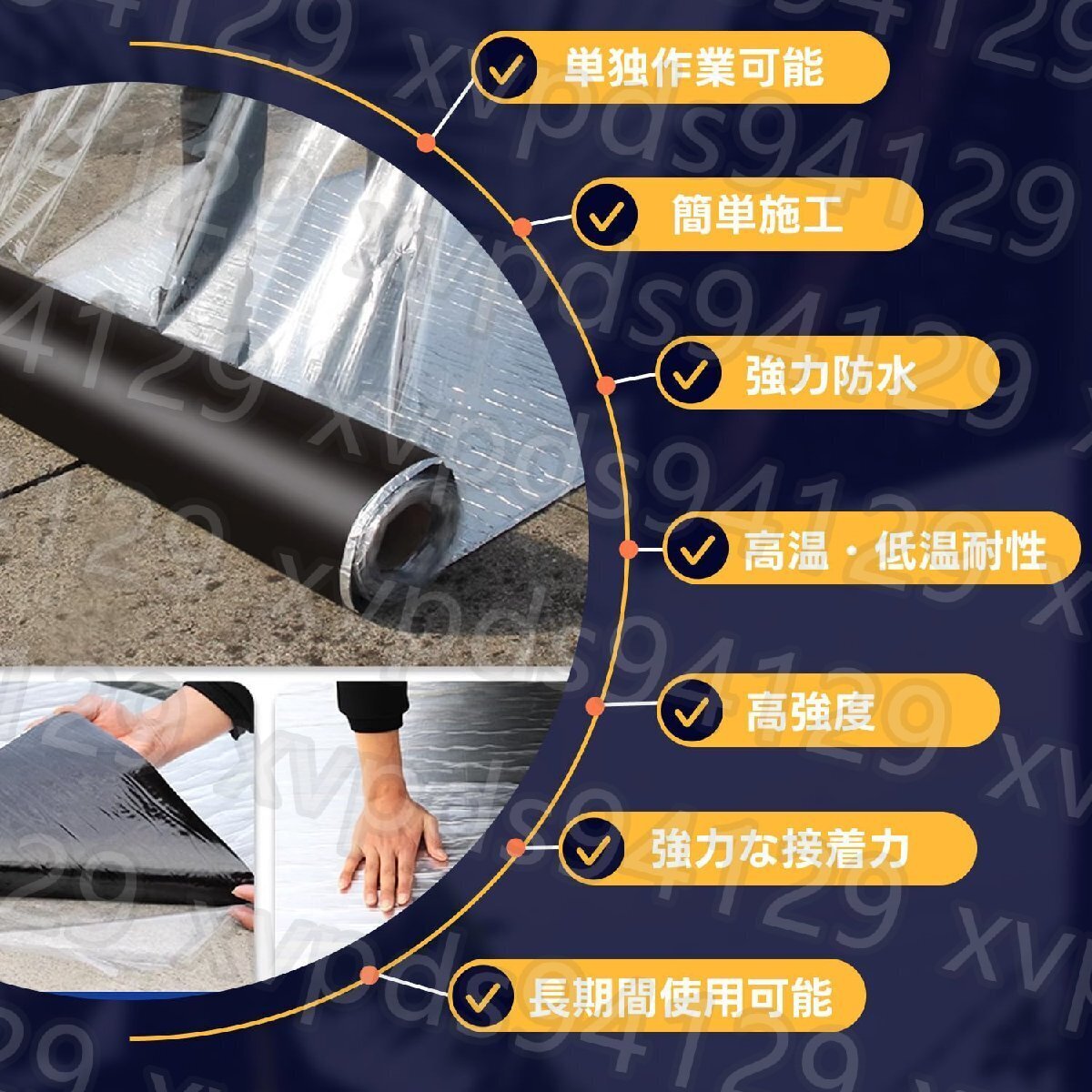 【強力防水】高品質材料使用しています。アルミフィルムの防水性、防漏性、断熱性に優れています。貼りつけると、優れたアスファルトが下地の内部に浸透し、小さな穴をふさぎ、強力な防水効果を発揮します。高い反射率を持つ厚いアルミフィルムは、優れた耐熱性と耐久性を持ち、使用寿命を大幅に延ばします。