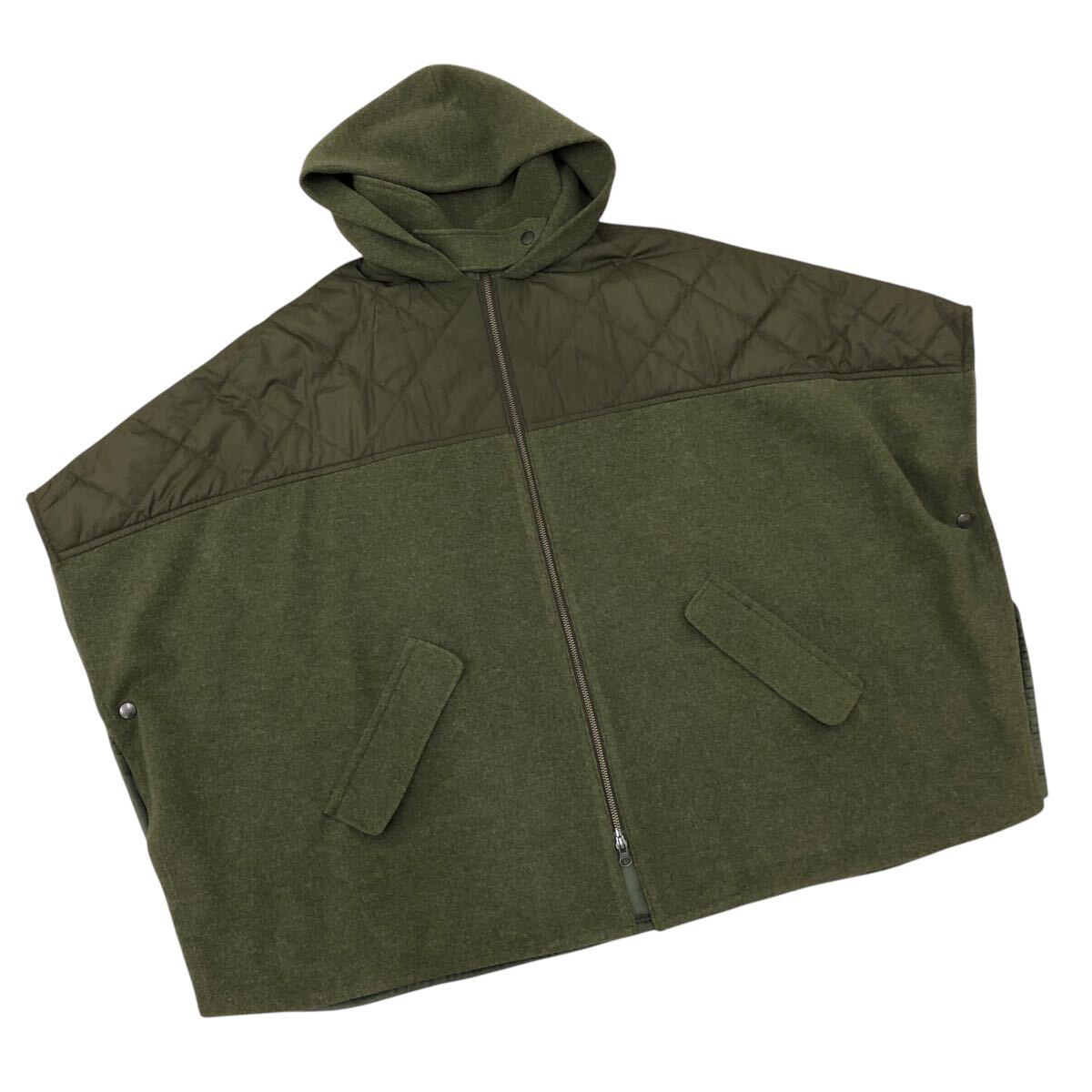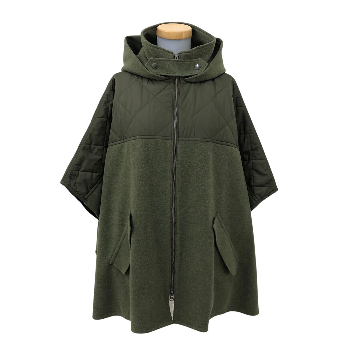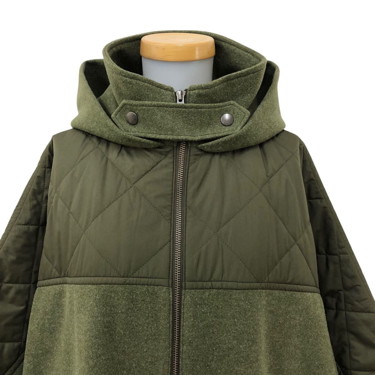 m609-67 美品 HERENCIA ヘレンチア キルティング ドッキング フード付き ポンチョ コート アウター カーキ レディース 38 日本製