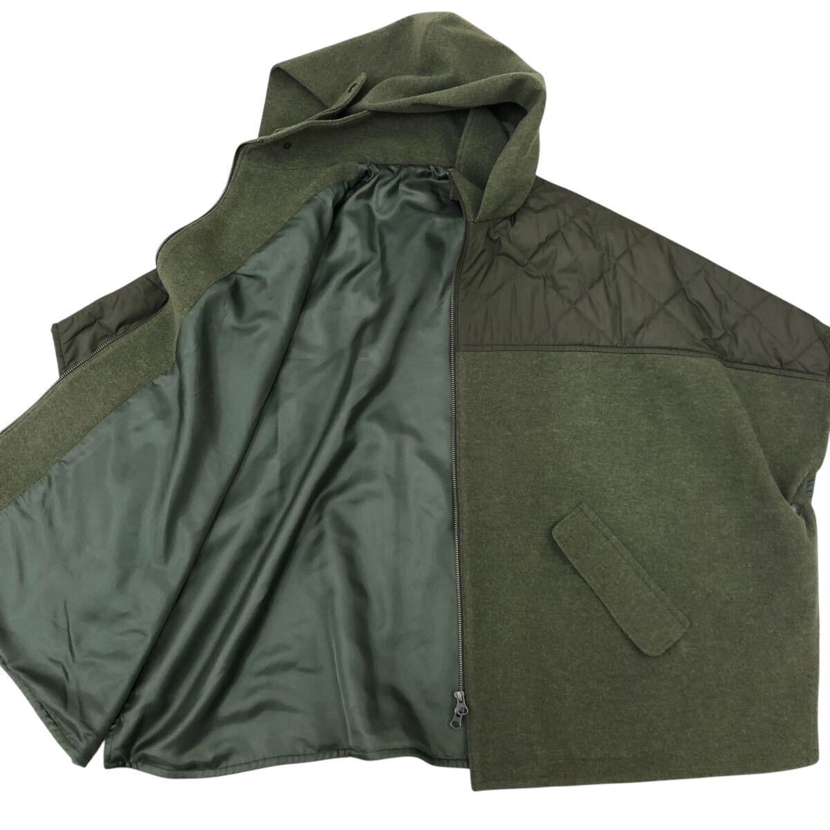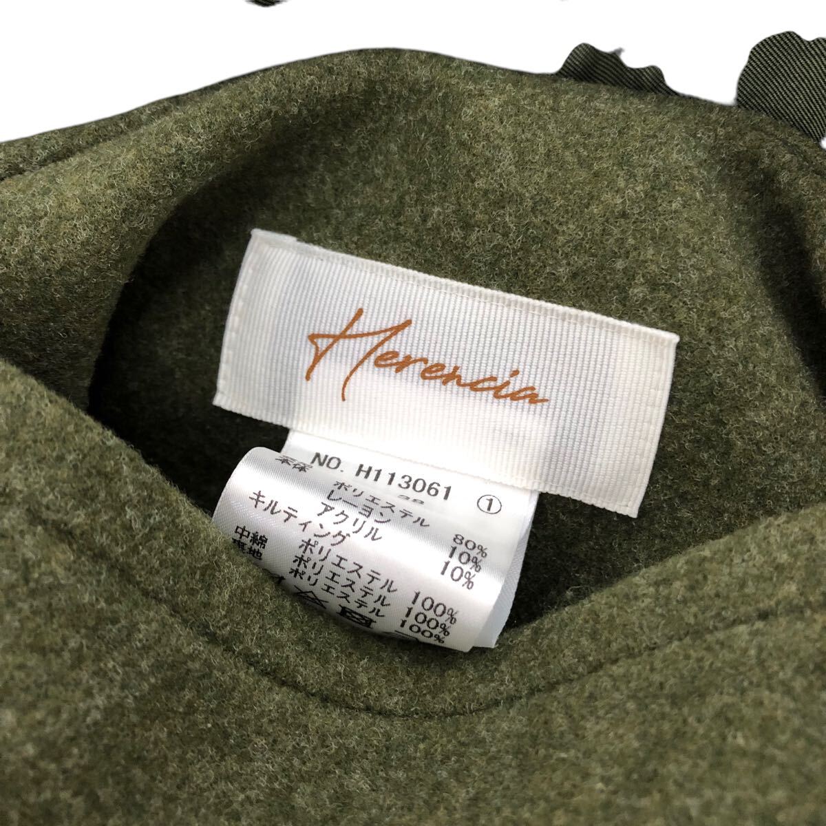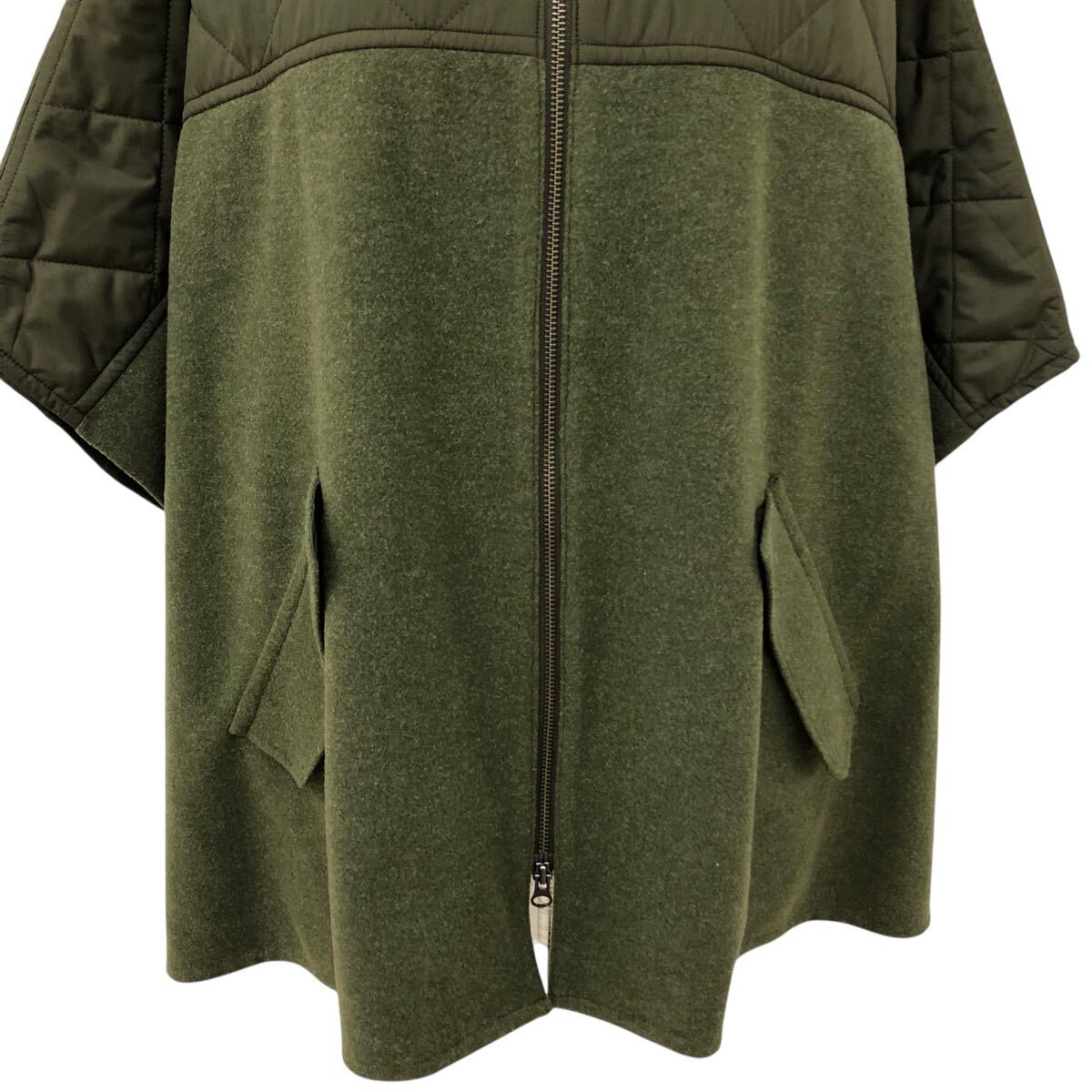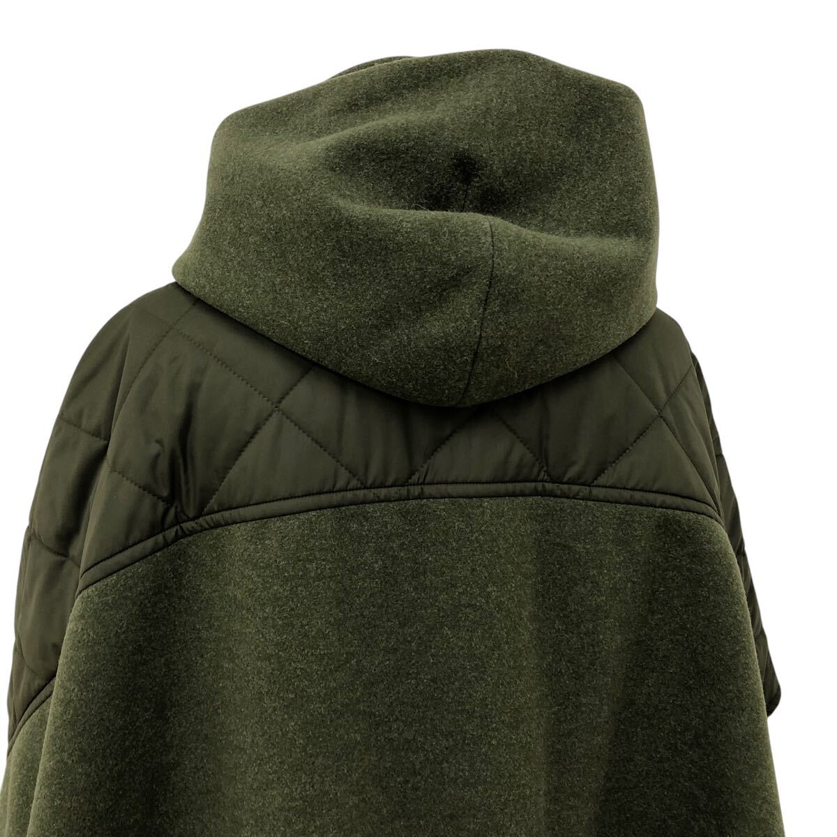 m609-67 美品 HERENCIA ヘレンチア キルティング ドッキング フード付き ポンチョ コート アウター カーキ レディース 38 日本製