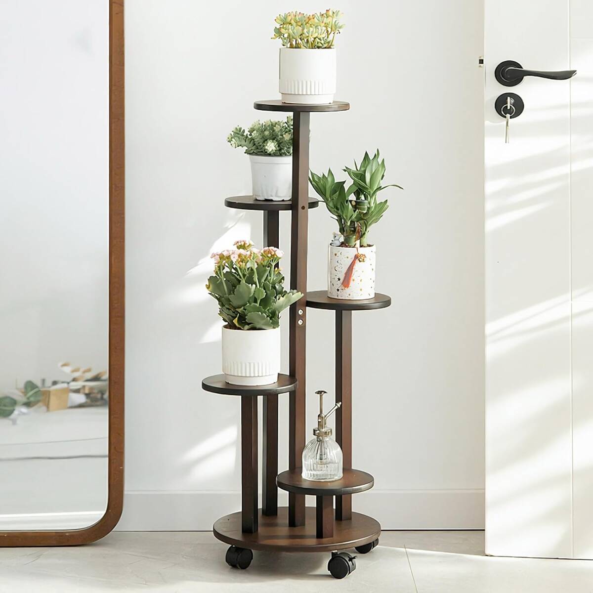 【大特価】フラワースタンド 花台 室内外兼用の5段 プランタースタンド耐荷重30㎏ 収納 (茶色)