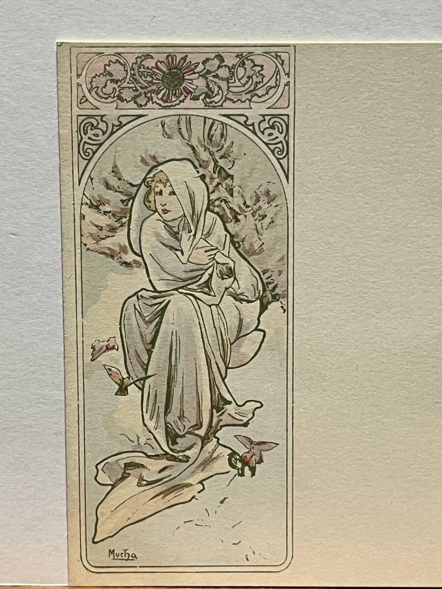 ★ ミュシャ「ショコラマッソンのカレンダー 冬」オリジナルリトグラフ絵はがき | |||