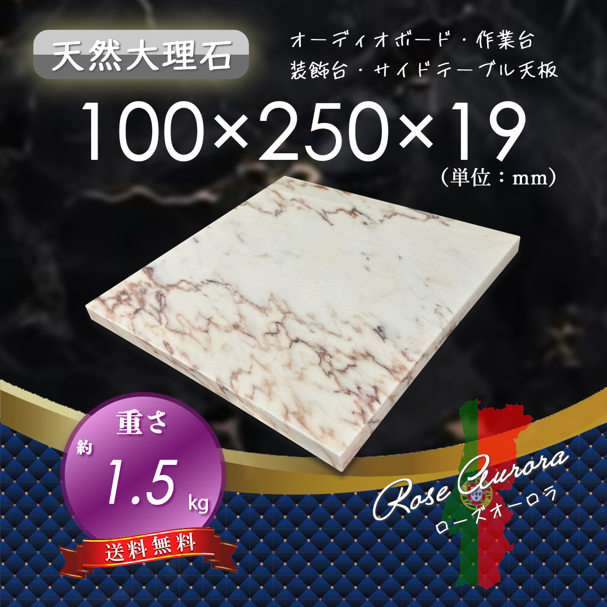 【超高級天然大理石】 オーディオボード 白系 ローズオーロラ 100mm×250mm×19mm 5面磨き 新品 即決 送料無料