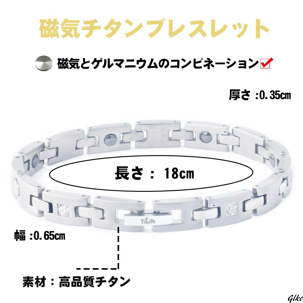 健康をサポートする磁気ブレスレットで、チタン製の素材が特徴です。