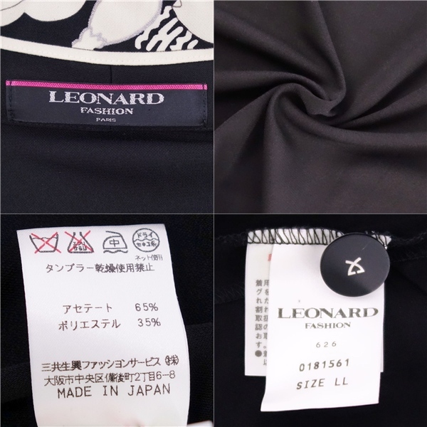 | レオナール LEONARD FASHION ジャケット ロングスリーブ 長袖 花柄 ジャージー アウター レディース LL ブラック |