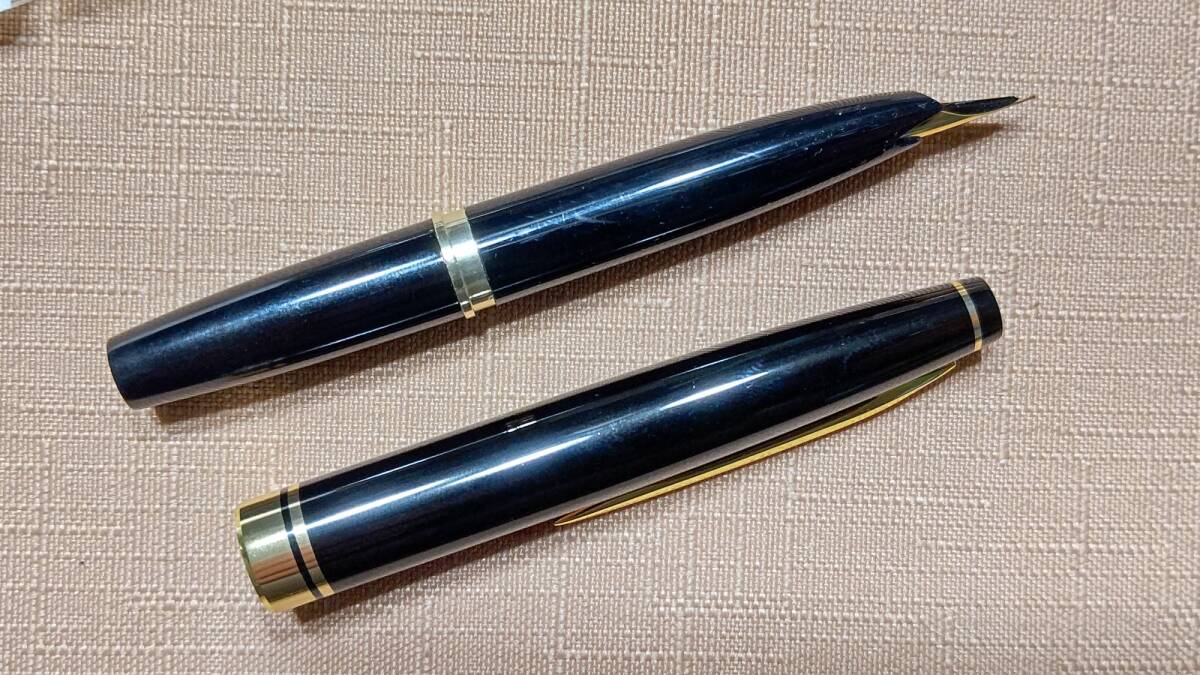 313-13 デッドストック セーラー万年筆 ミニ ペン先 F-1 ブラックボディにゴールドトリム カートリッジ2本未開封 説明書付属