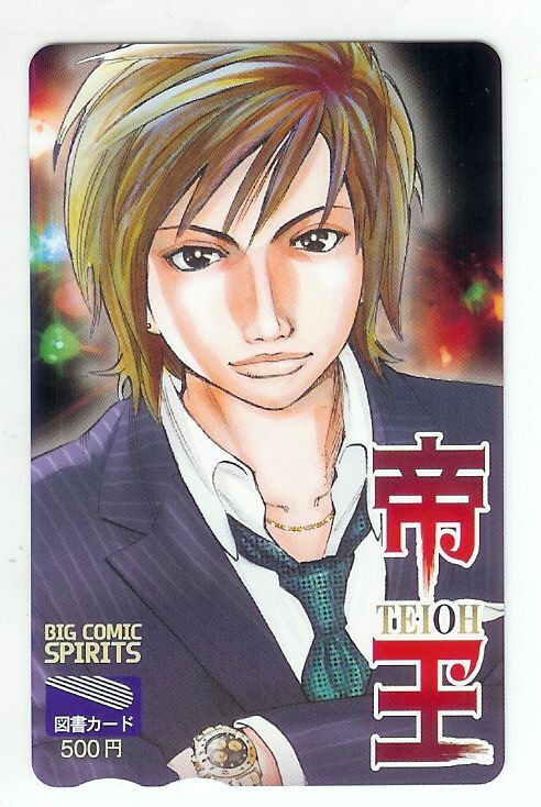 ・小学館「ビッグコミックスピリッツ」連載中の「帝王/作:倉科遼・画:関口太郎」図書カードです。