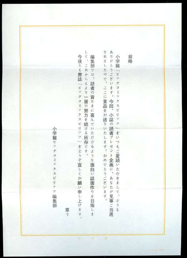 ・当選通知書もお付けいたします。