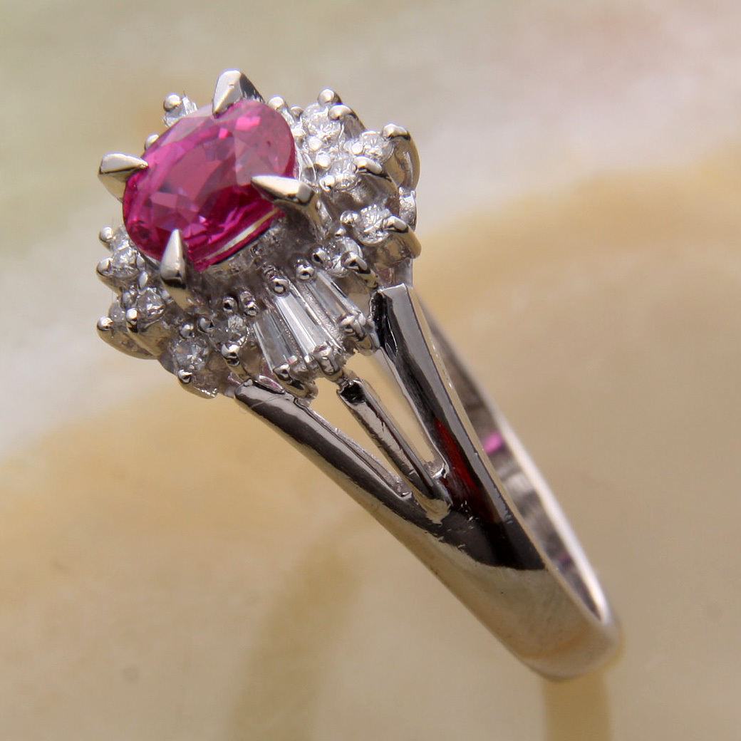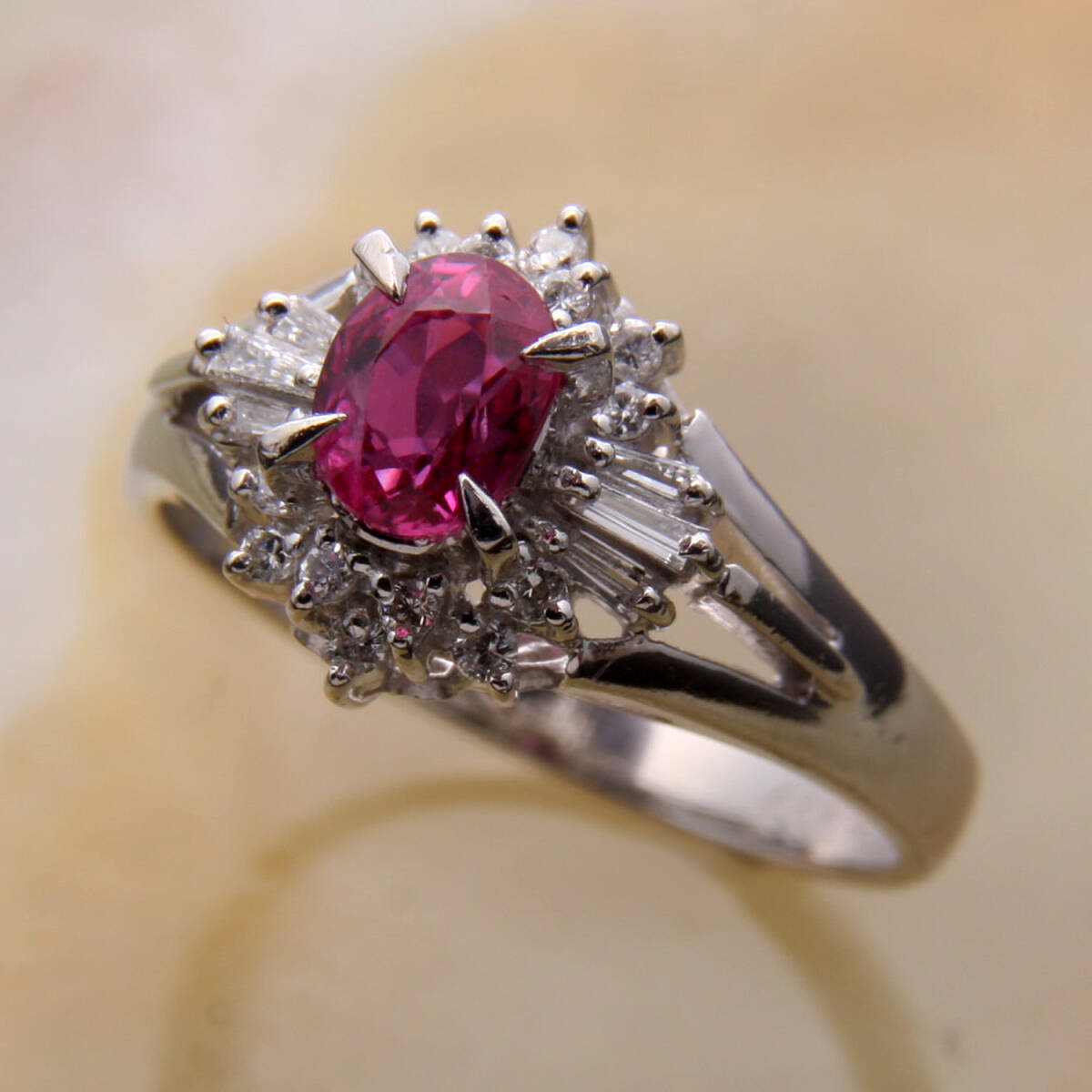 Pt900製、ルビーとダイアモンドの9号リングです。