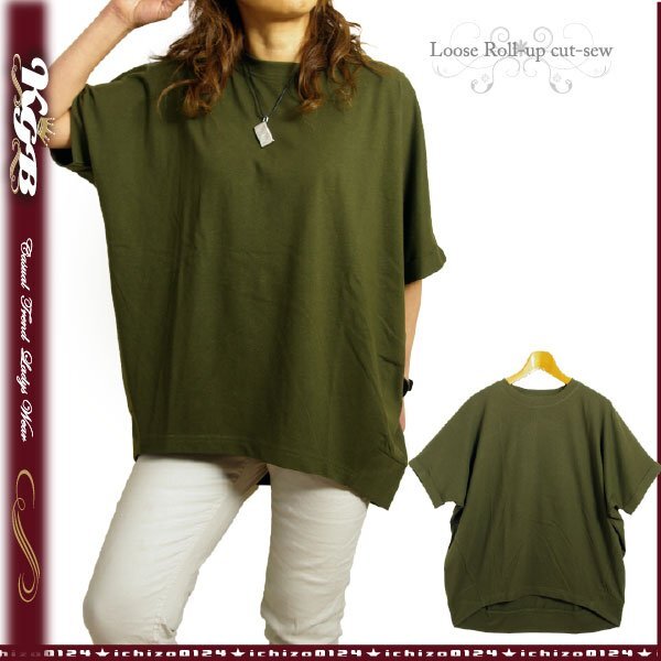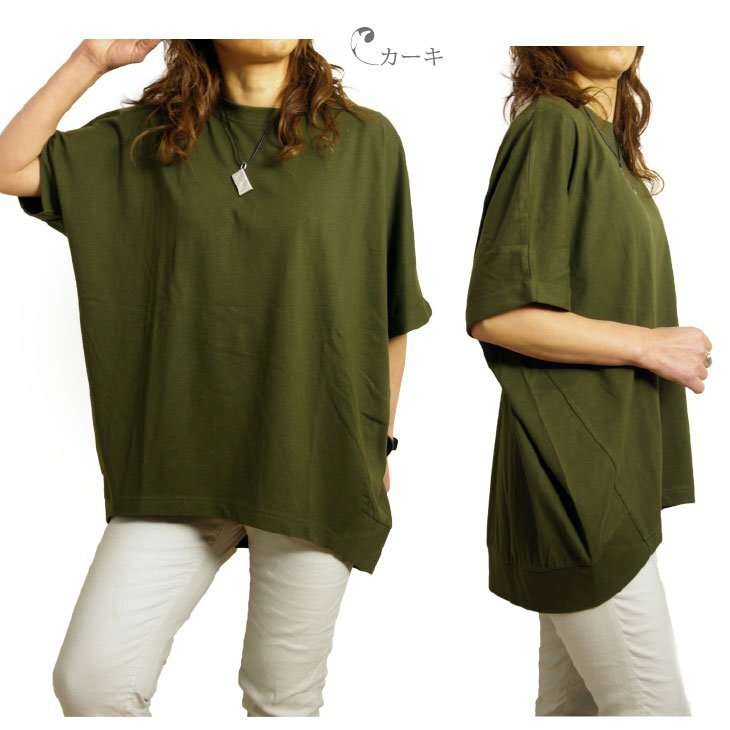 M~L カットソー 5分袖 レディース トップス Tシャツ ワイドサイズ ゆったり カーキ 新品