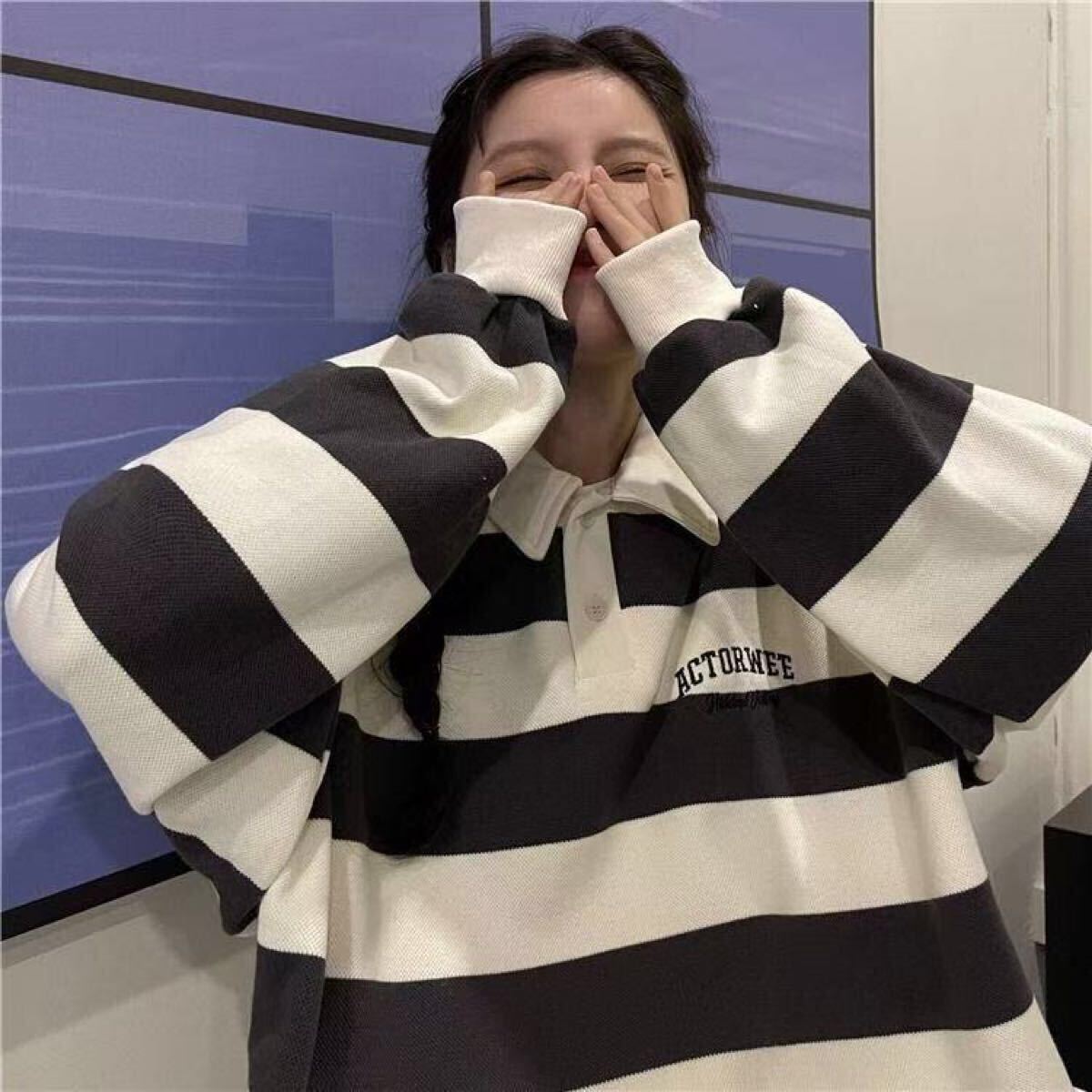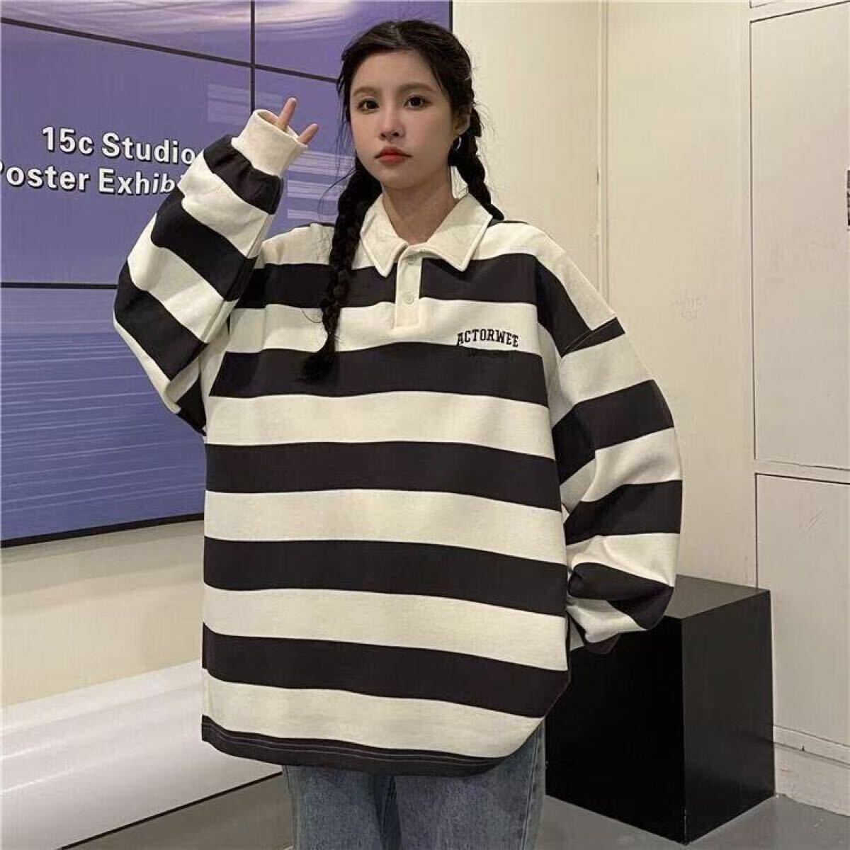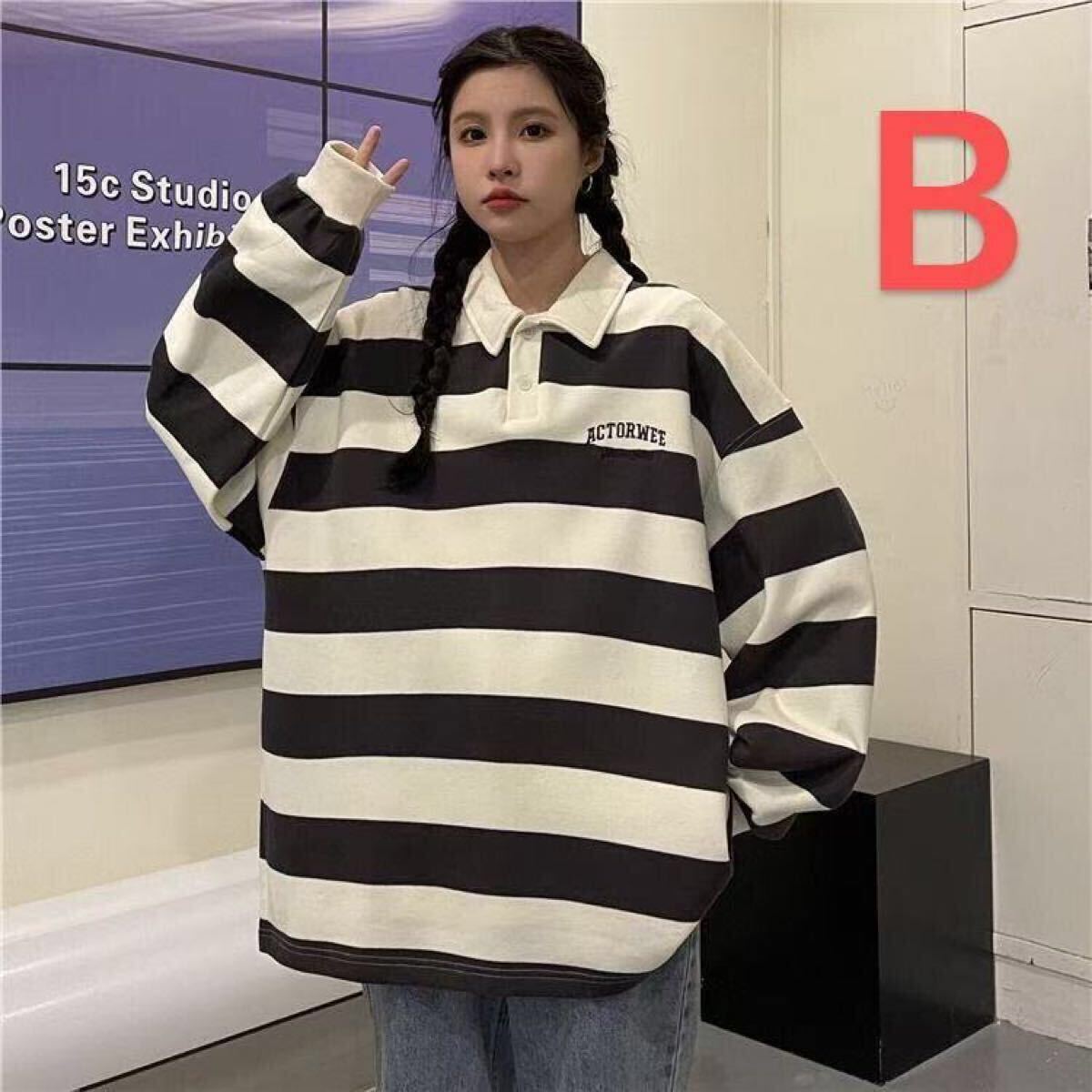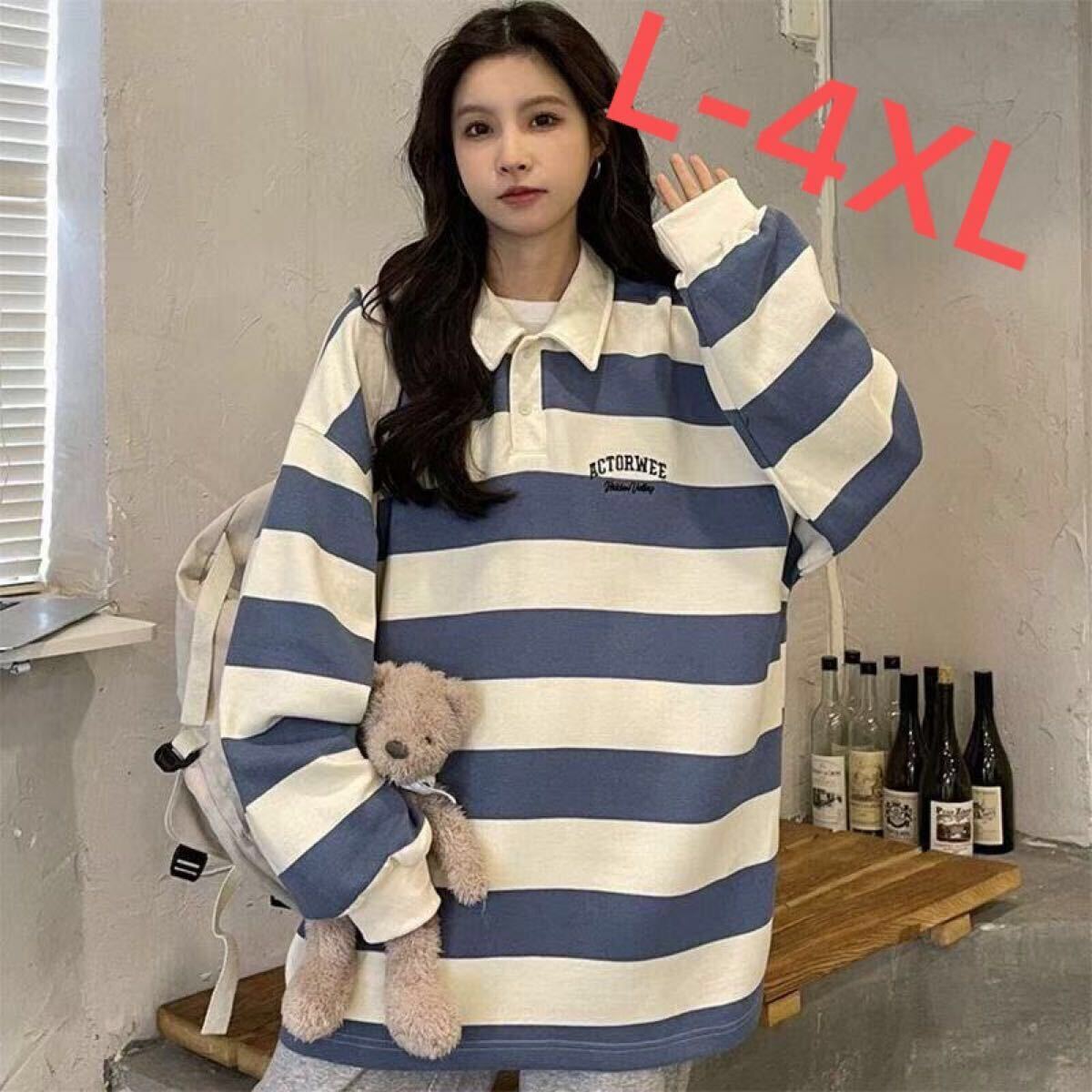 トレーナー レディーストップス ボーダー柄 大きいサイズ レディーストップス レディース洋服 普段着 レディーストレーナー 可愛いトレーナー POLOネック 春 秋 秋服 春服 長袖 ゆったり 体型カバー カジュアル 大人コーデ 大人カワイイ お出かけ LUGA007(2色L-4XL)