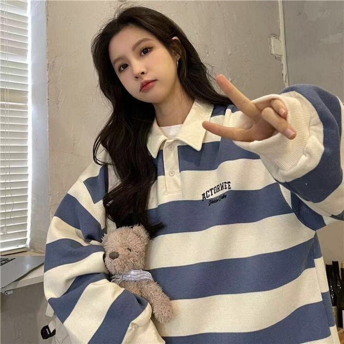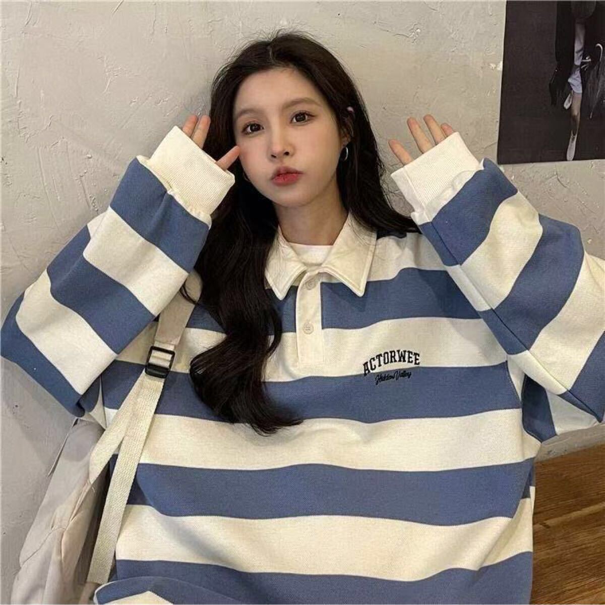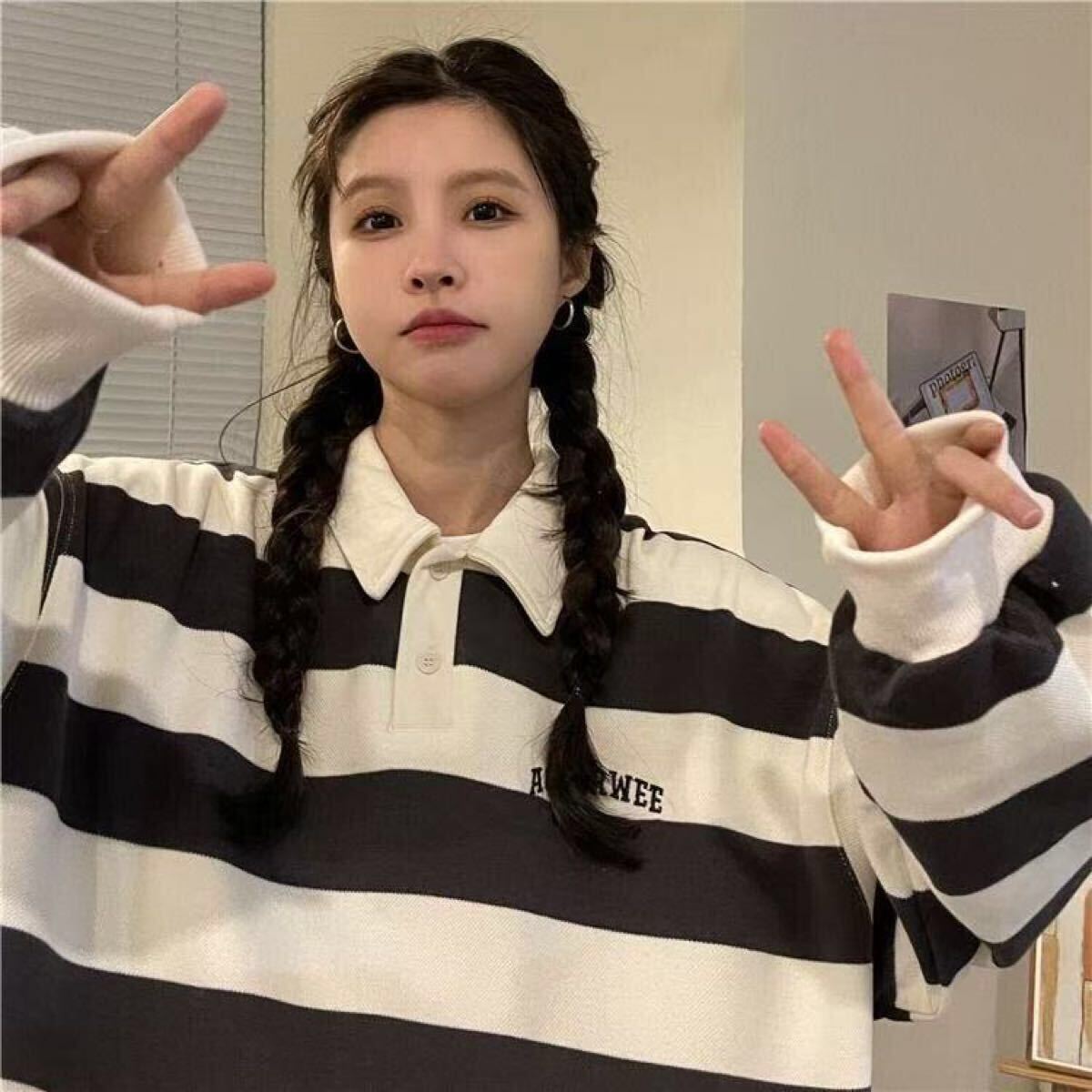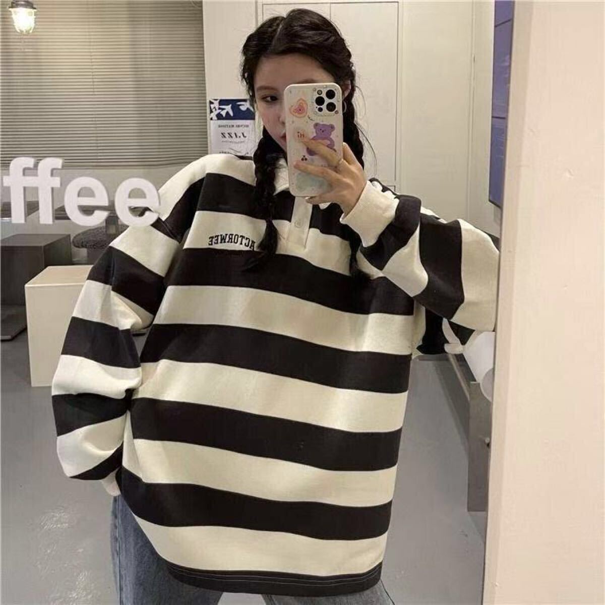 トレーナー レディーストップス ボーダー柄 大きいサイズ レディーストップス レディース洋服 普段着 レディーストレーナー 可愛いトレーナー POLOネック 春 秋 秋服 春服 長袖 ゆったり 体型カバー カジュアル 大人コーデ 大人カワイイ お出かけ LUGA007(2色L-4XL)