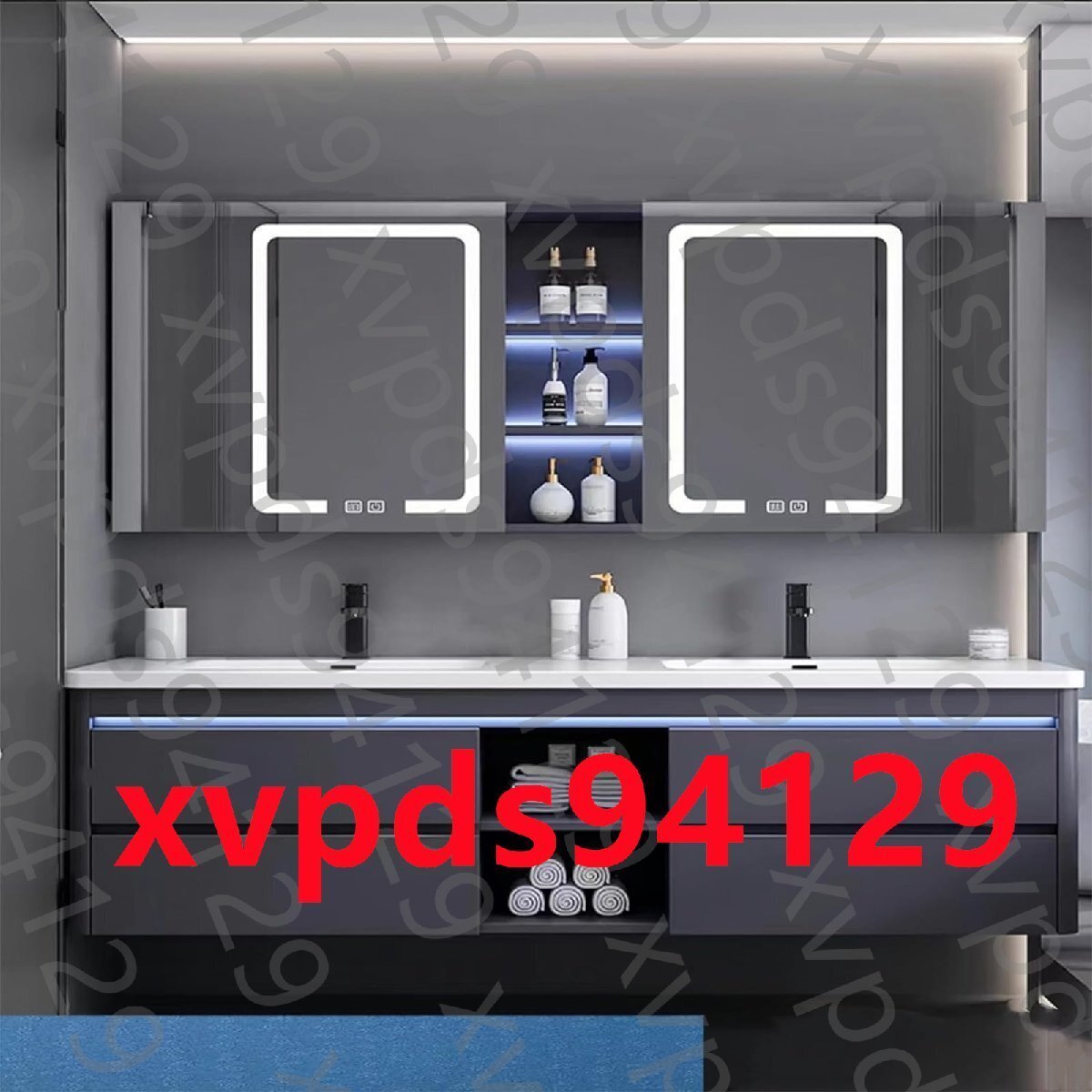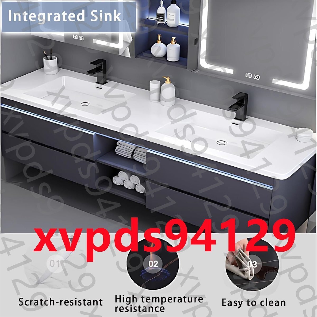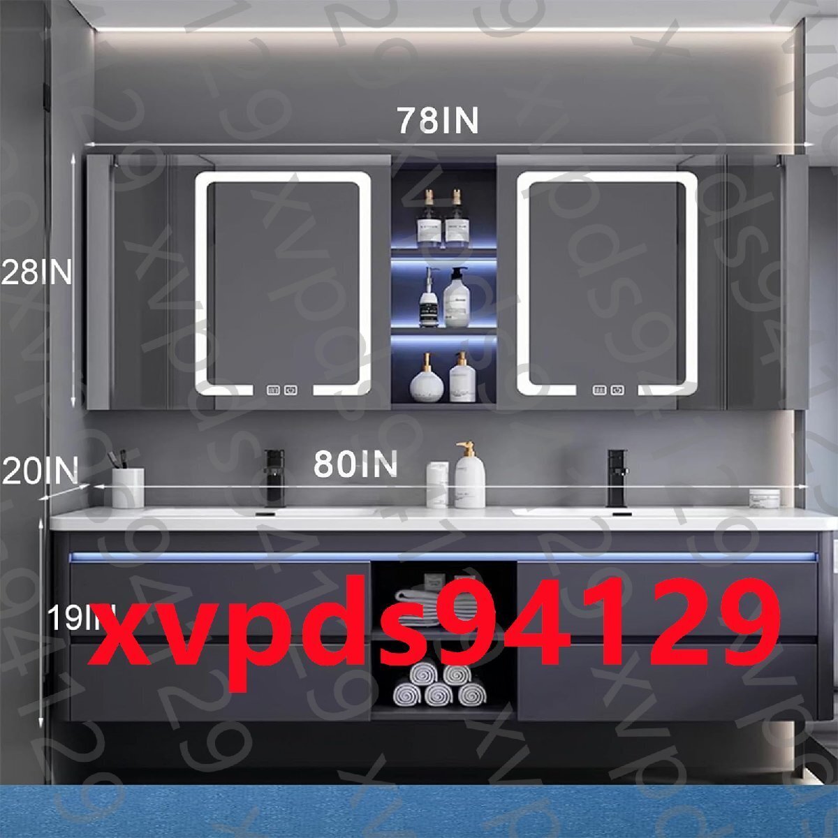 80インチ浮動式バスルームバニティ - モダンなバスルームバニティ、ダブルシンク、スクエアシンク | ワンタッチの曇り止めとLEDバスルームミラー、バスルームバニティベース ナノ 80in