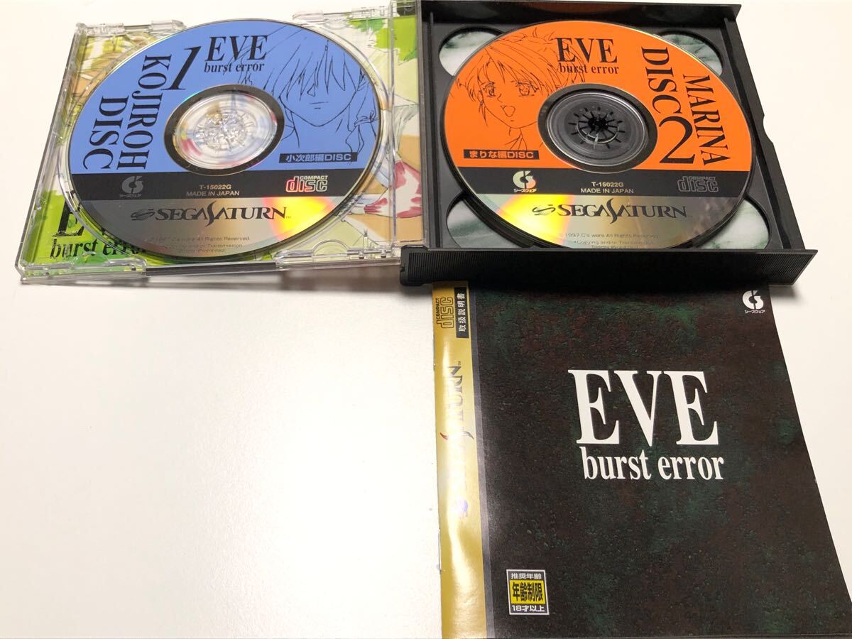 SS(セガサターン)ソフト、EVE burst error(イブ・バーストエラー) 初回限定版です。ディスクキズ無し、ケースにキズがあります。付属品完備です。ペット・タバコの無い環境です。